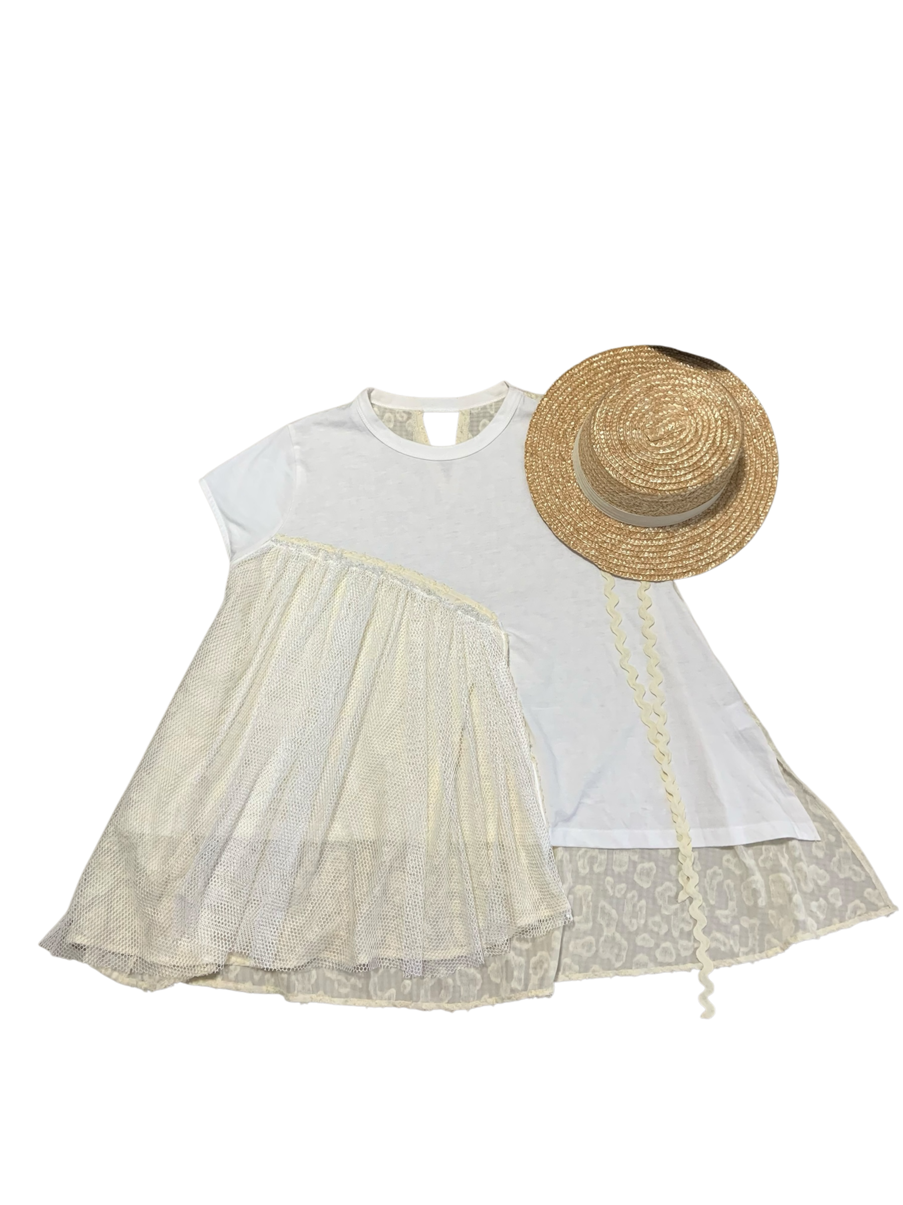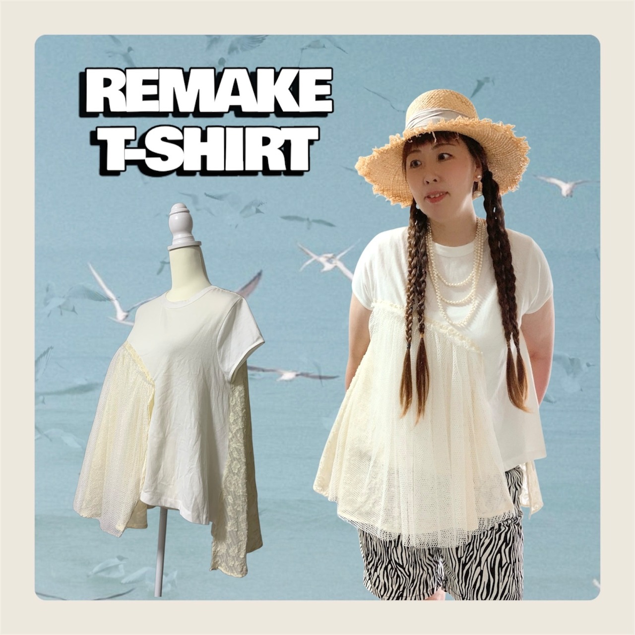 1点もの リメイクアシンメトリーTシャツ メッシュチュール【送料無料】