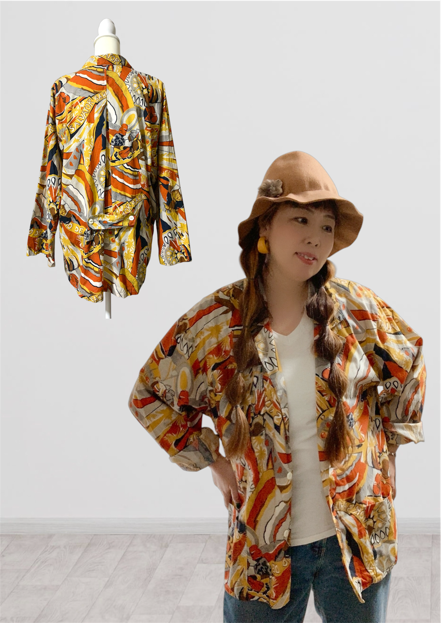 個性的なデザインが目を引くUSEDの総柄ジャケット!