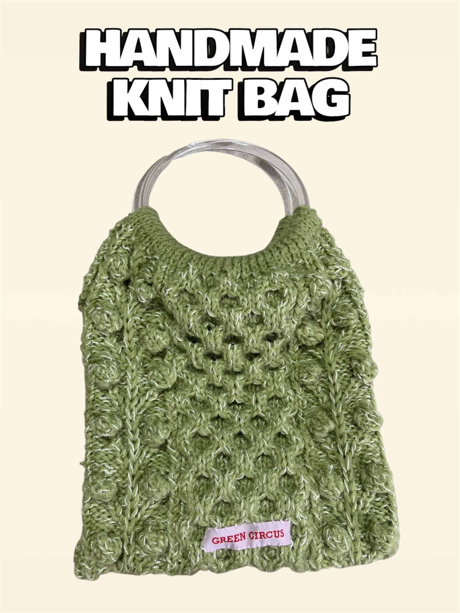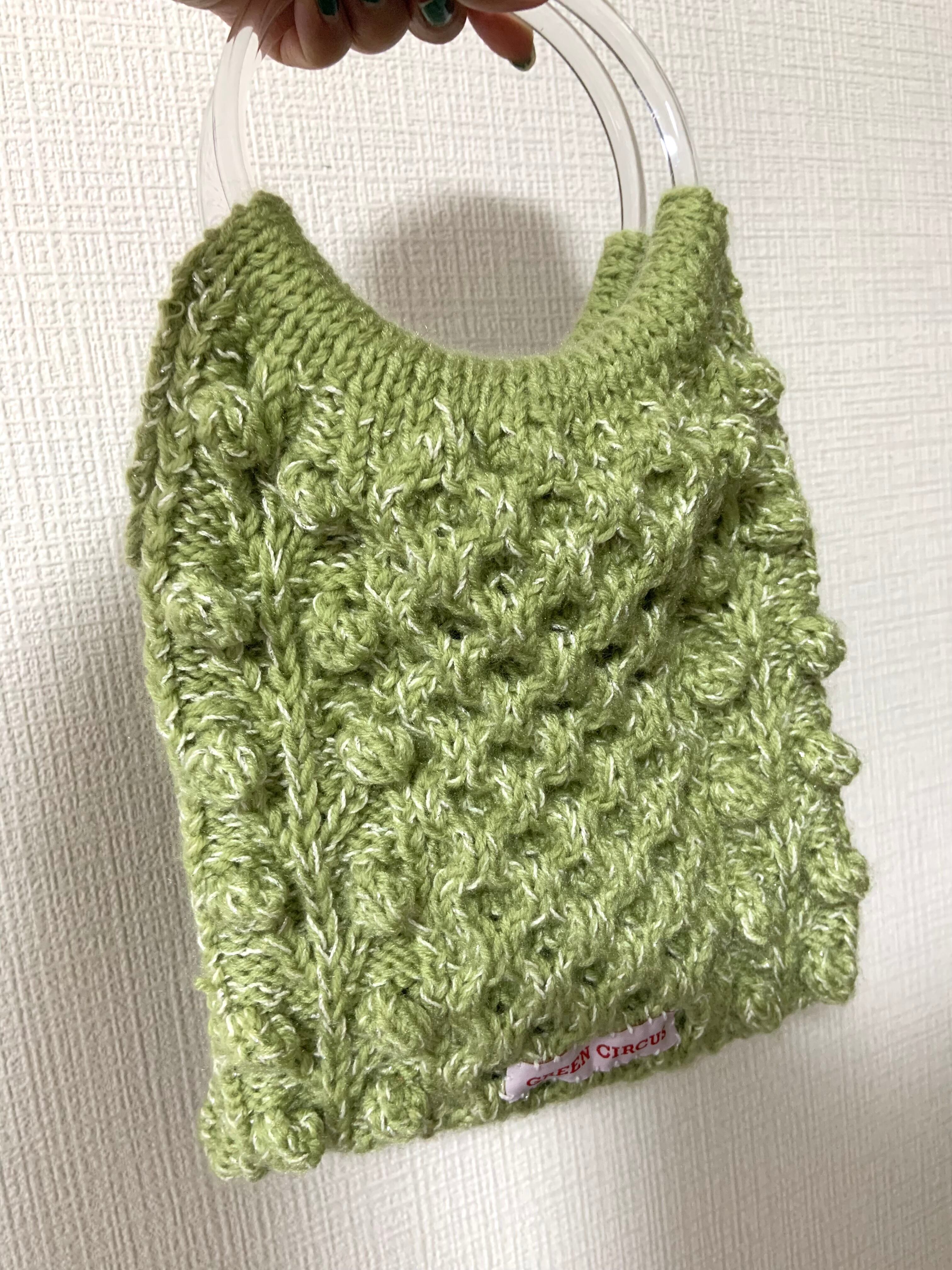 1点もの 手編みニットBAG ミニサイズ グリーンラメ【送料無料】