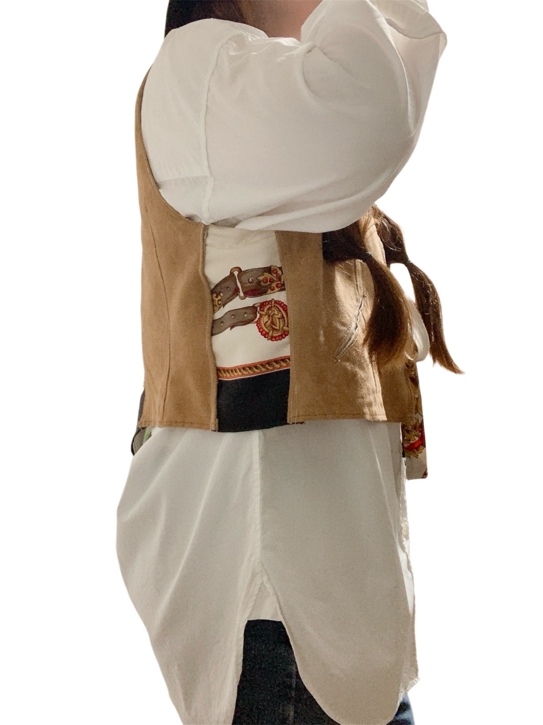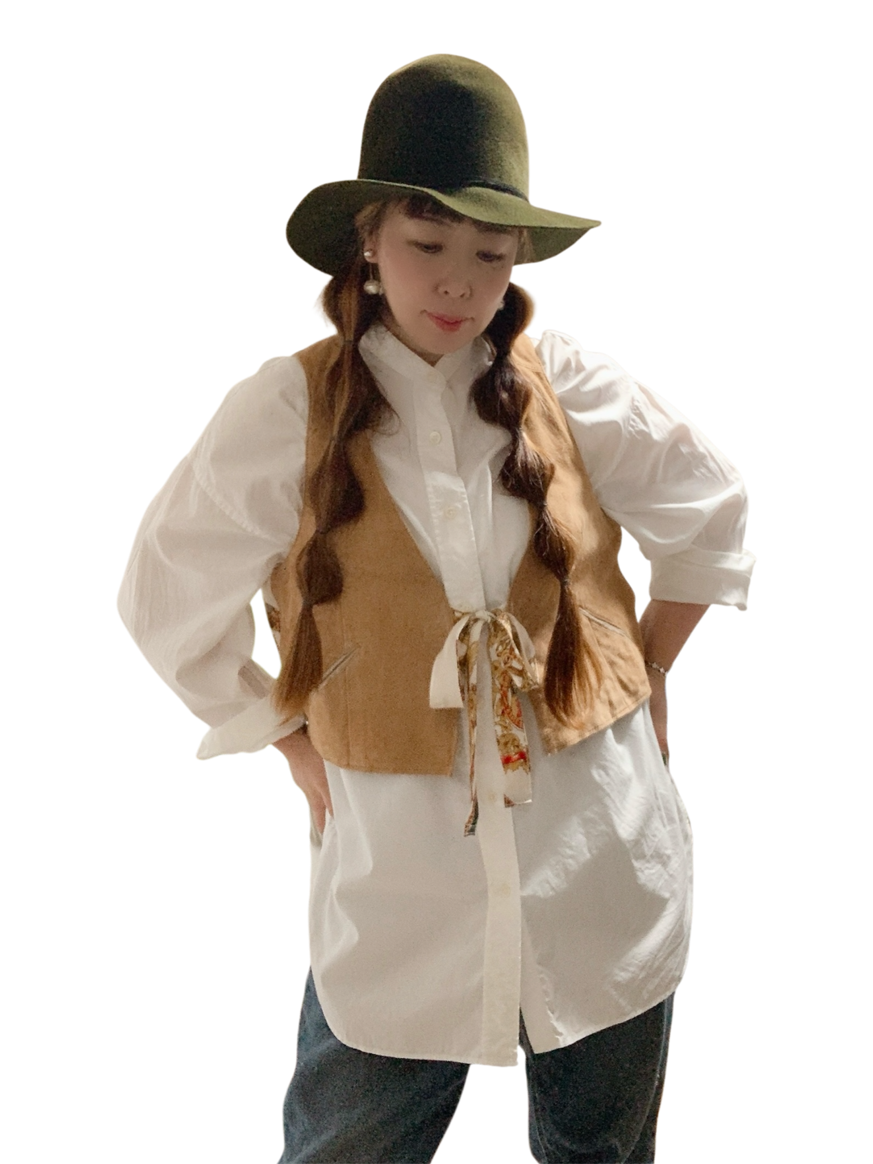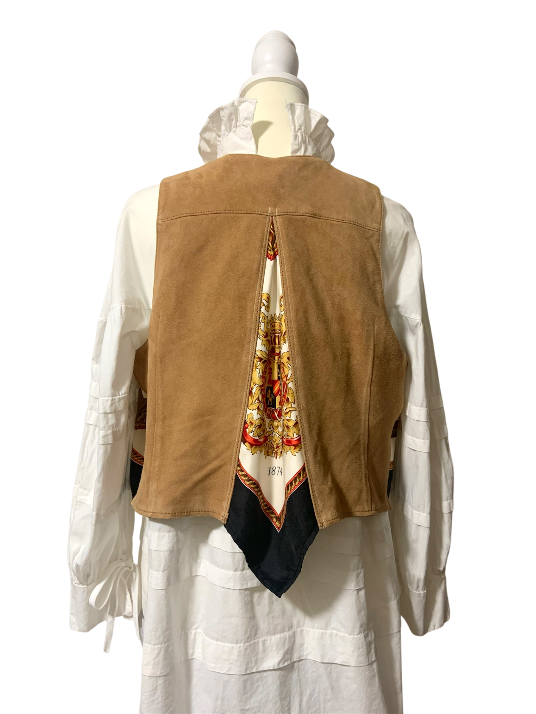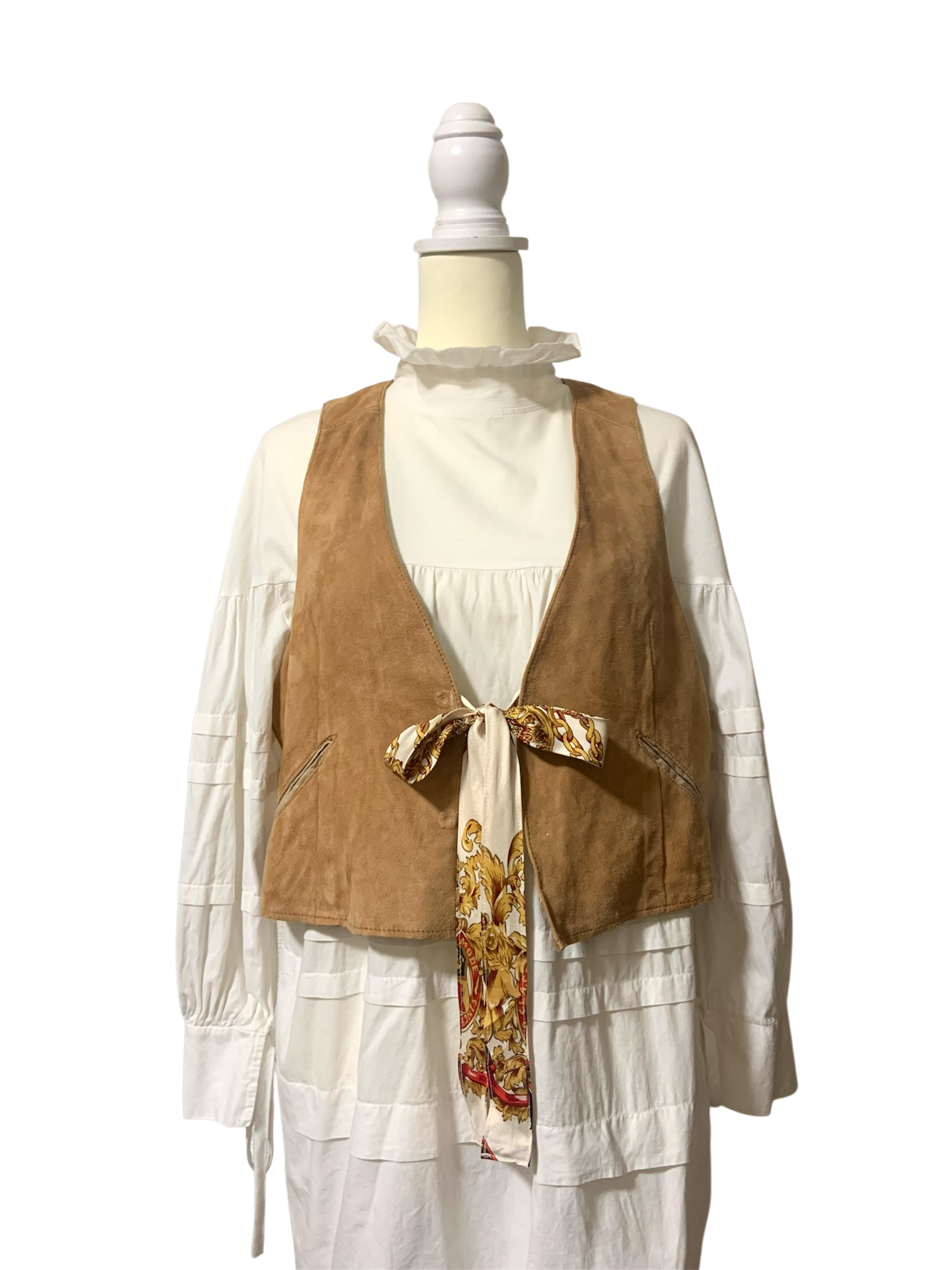 スウェードベスト(ヤギ革)に、レトロスカーフを