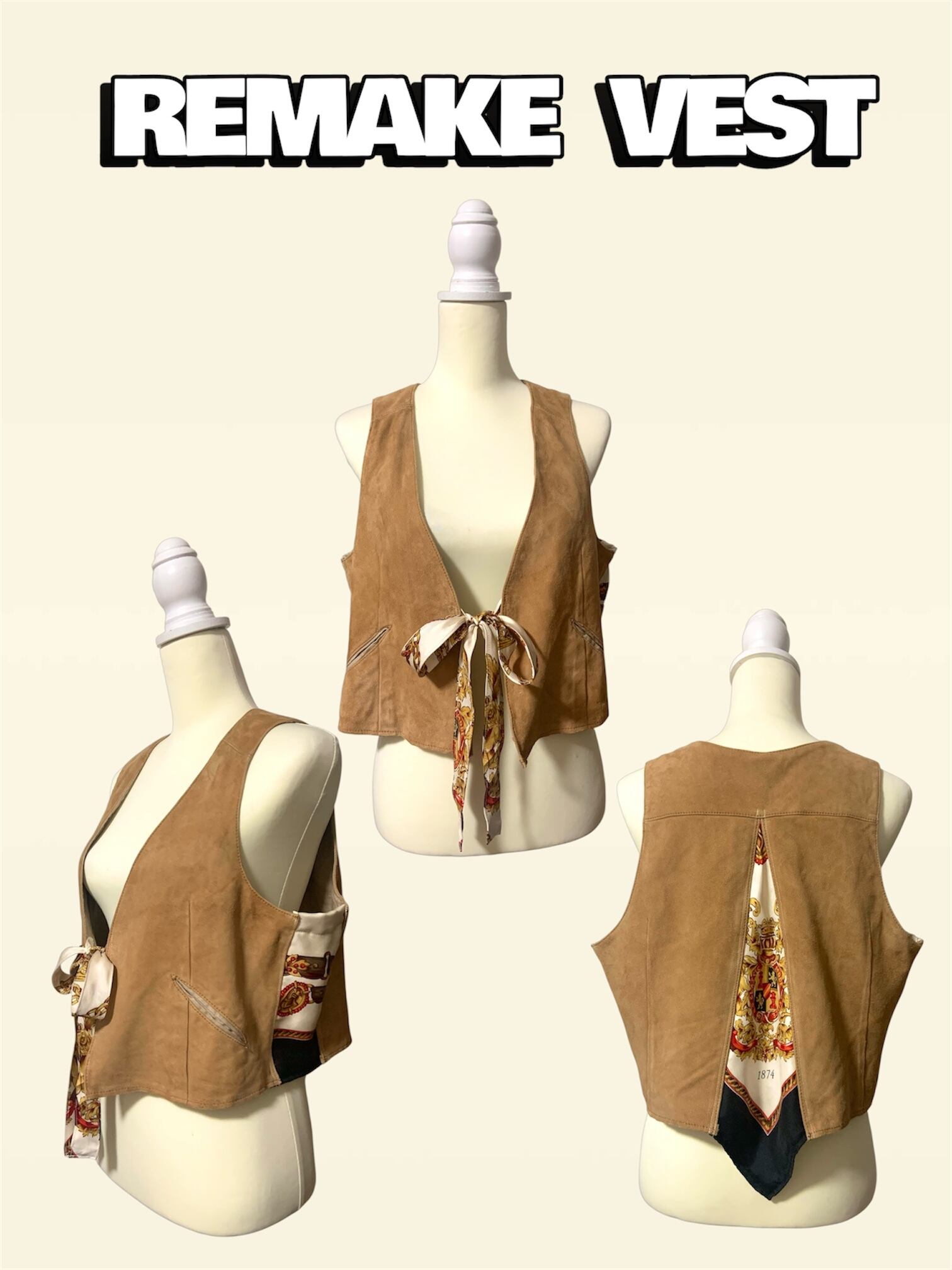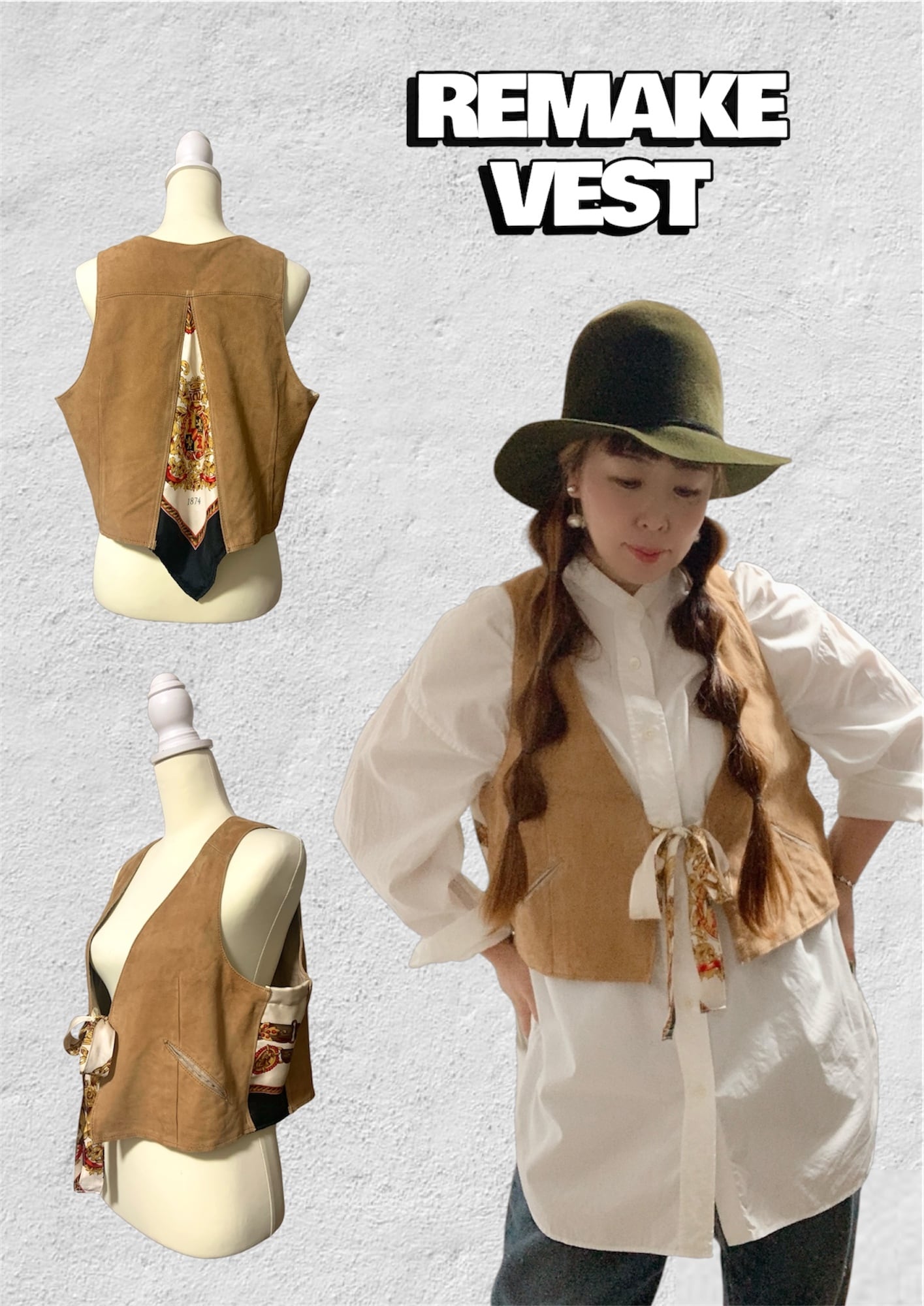 1点もの リメイクスウェードベスト レトロスカーフ【送料無料】