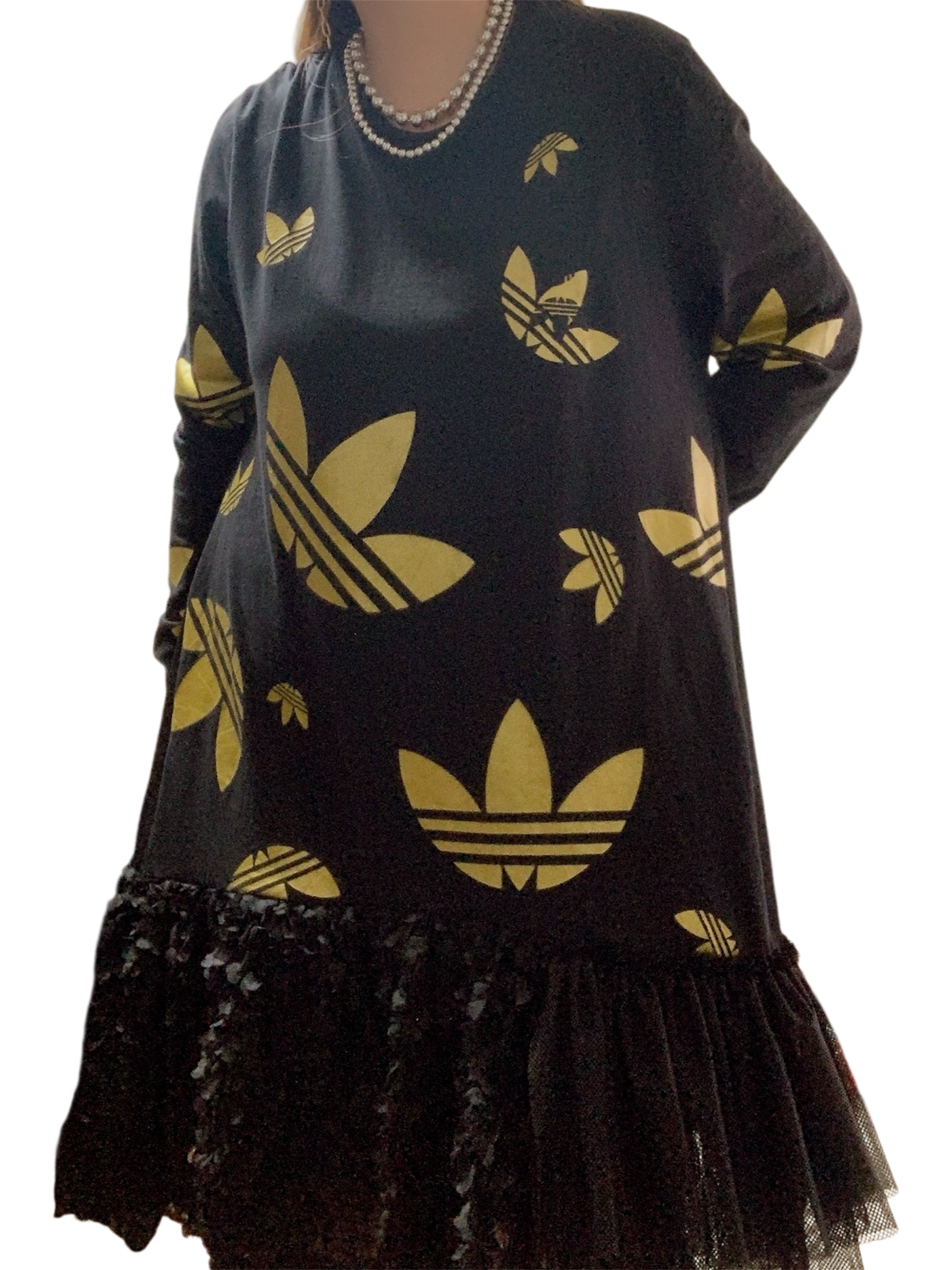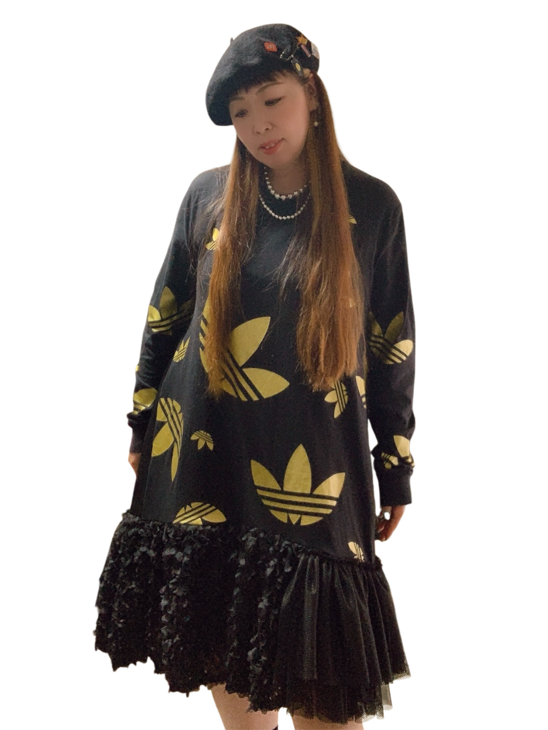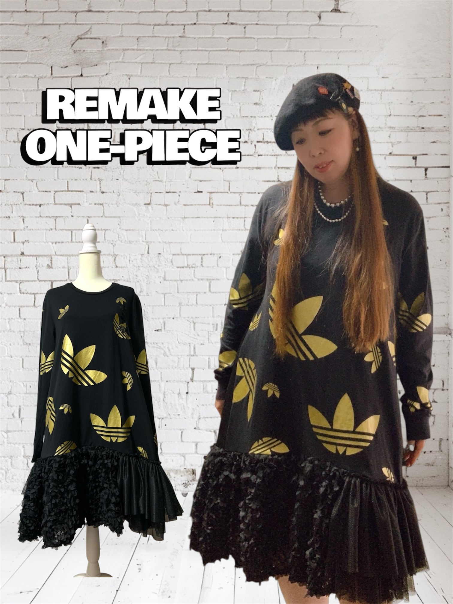 総柄ロンTをボリュームのあるワンピースにリメイクしました♪