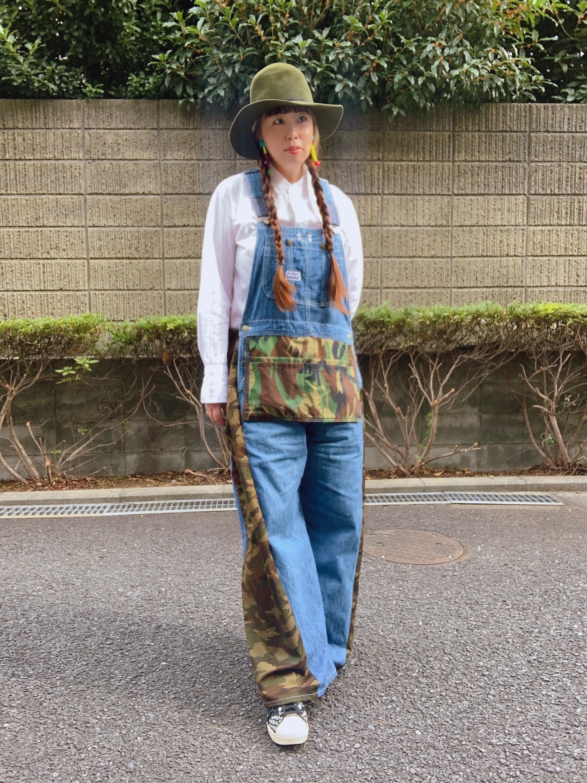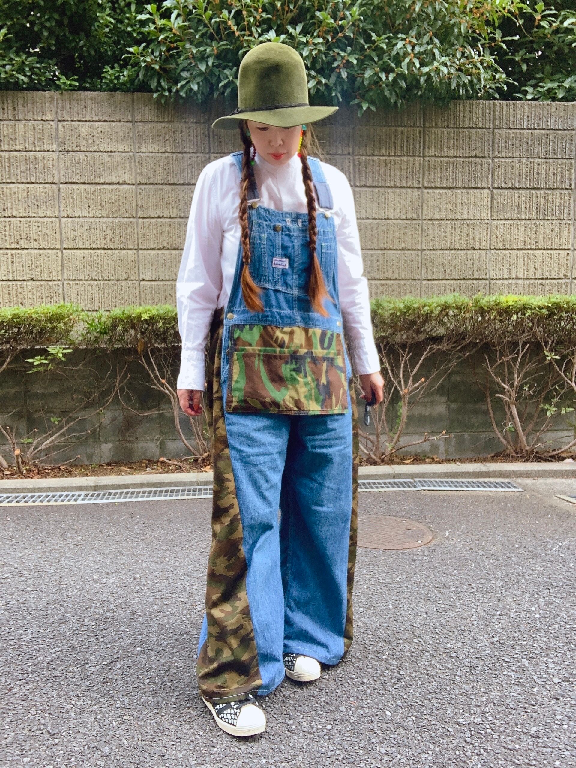 1点もの リメイクオーバーオール デニム×カモ柄【送料無料】
