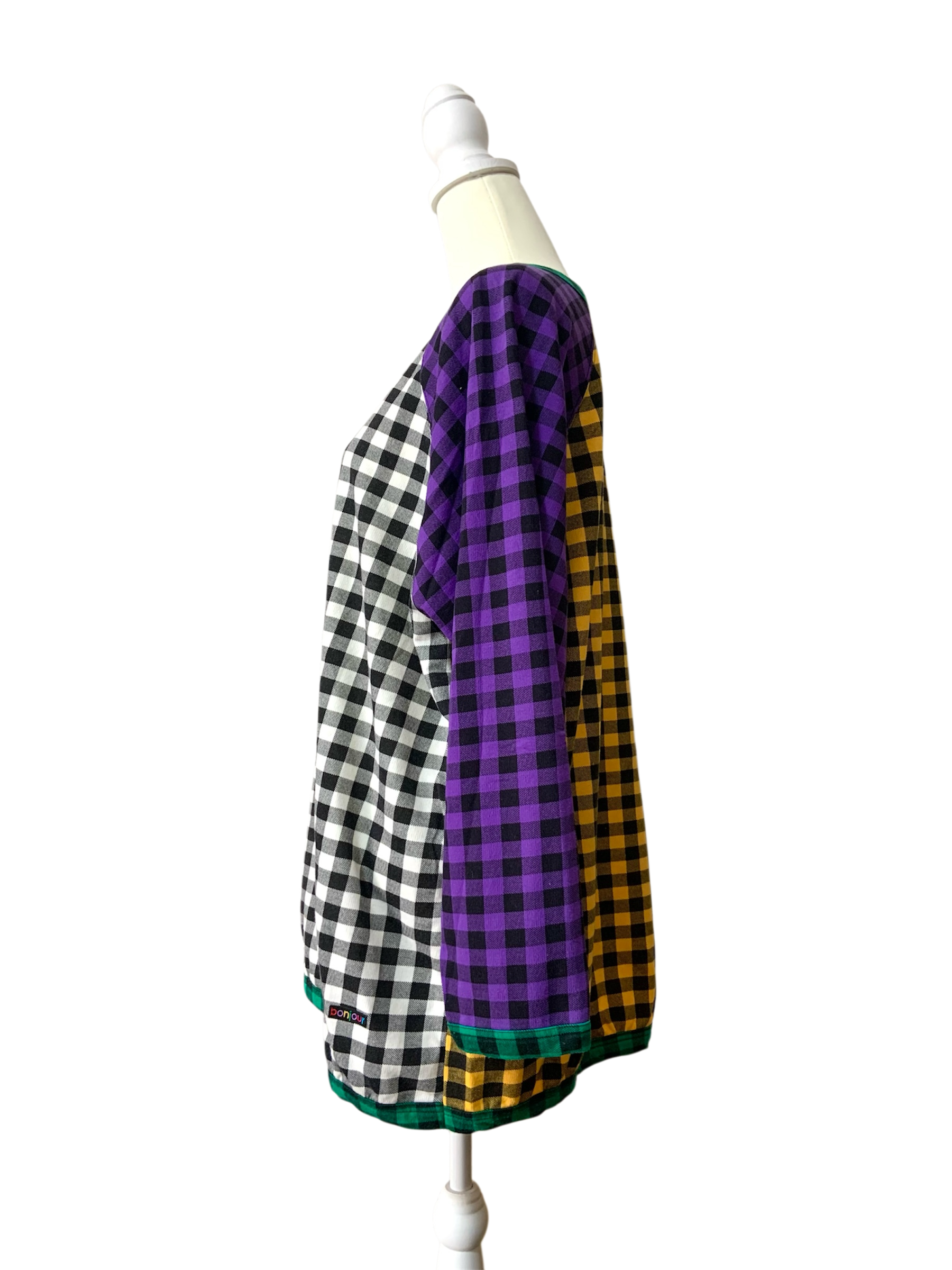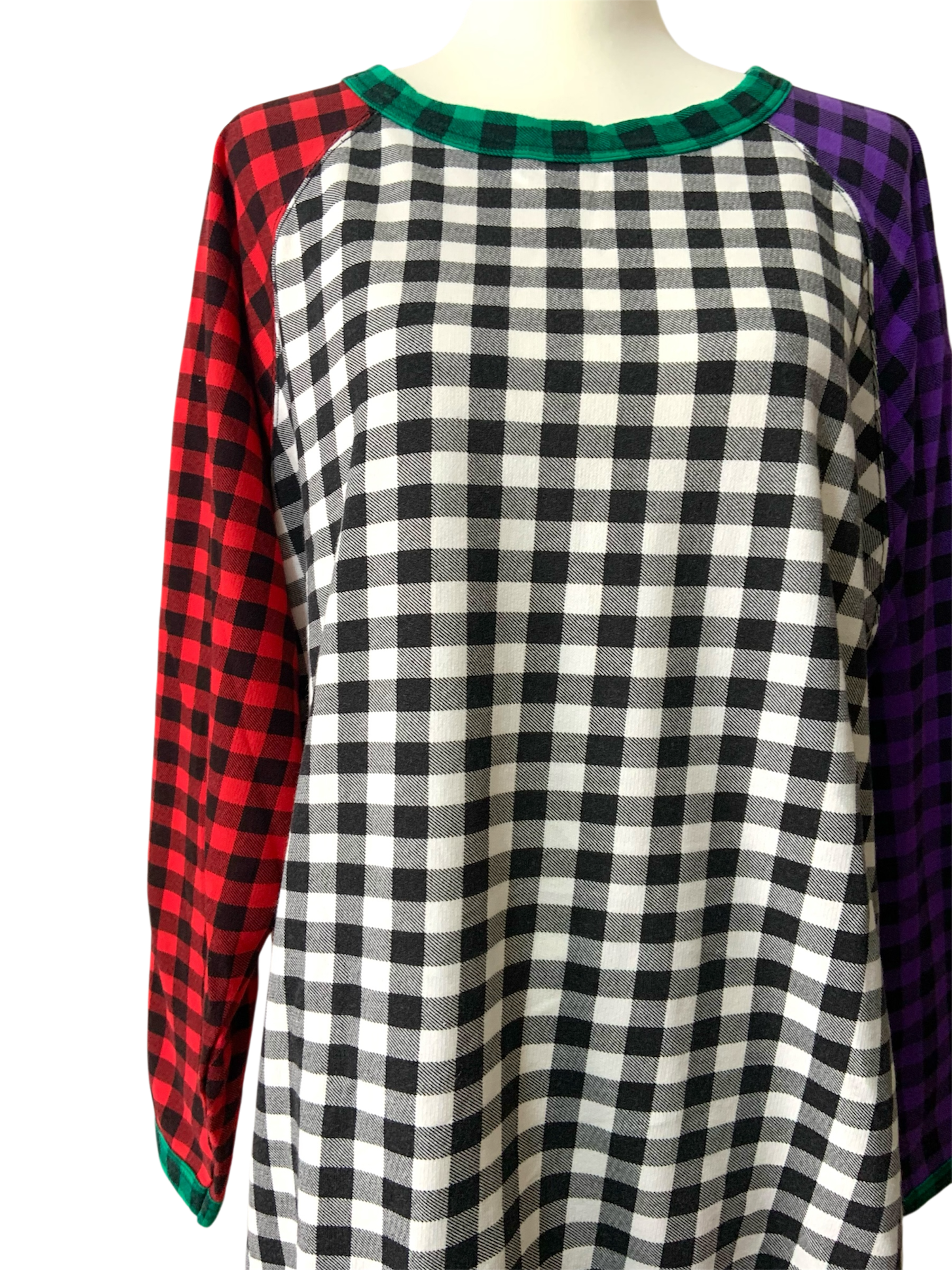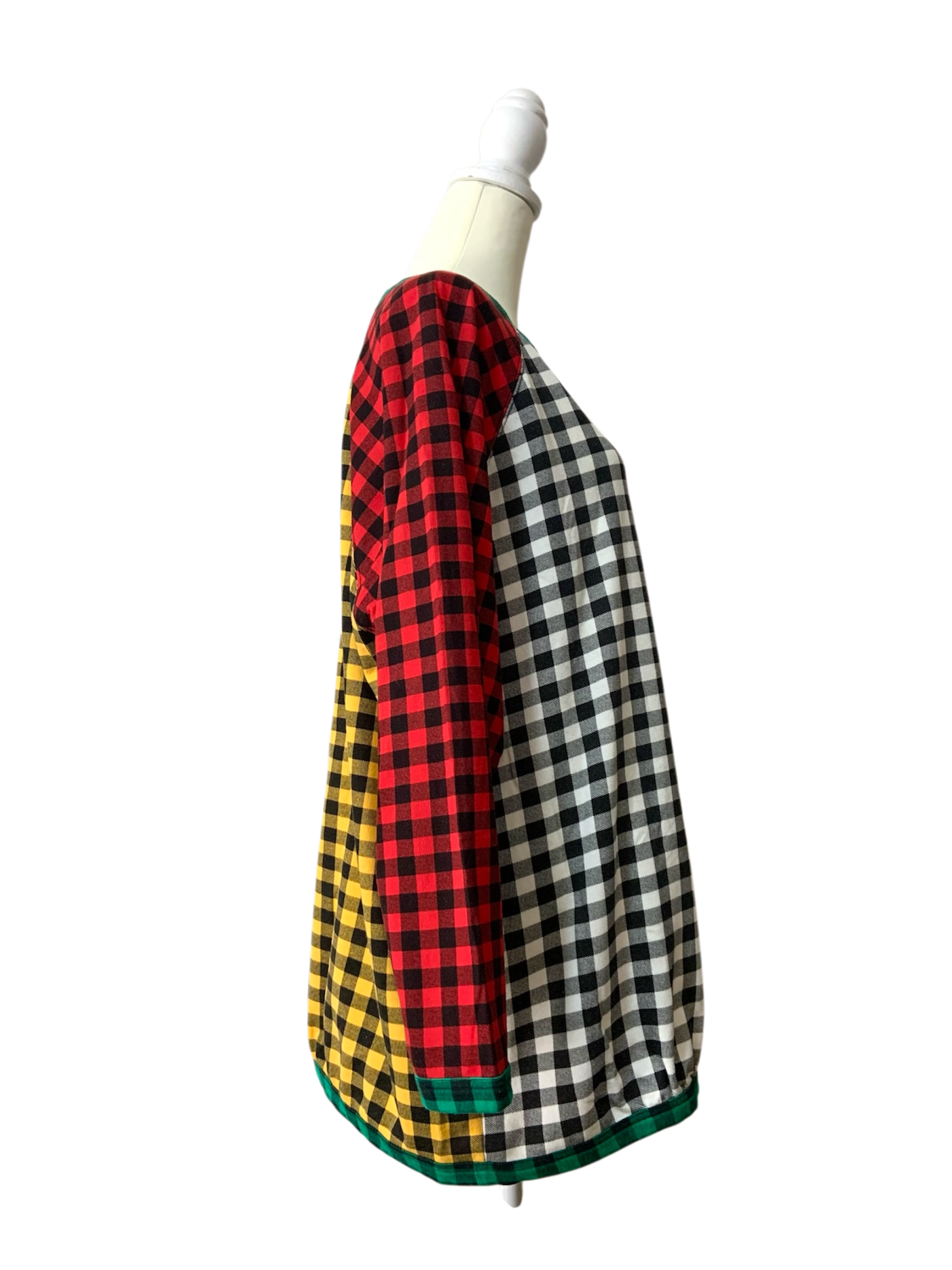 大胆な配色チェックが印象的なクレイジーパターンのロングスリーブTシャツです♪