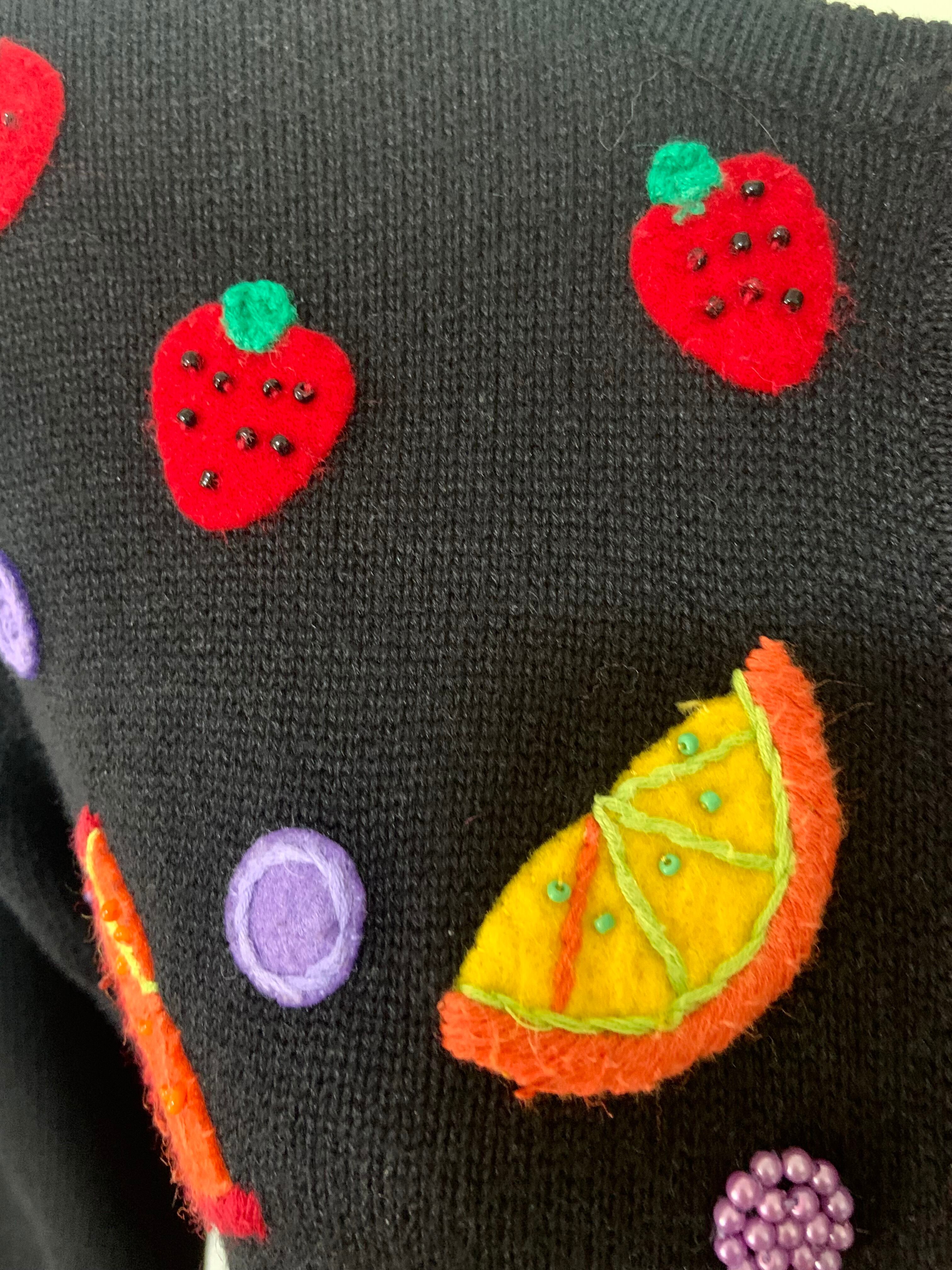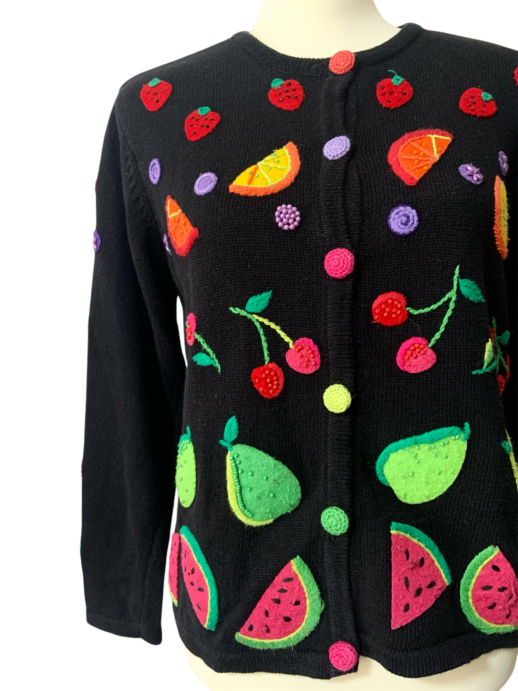 遊び心たっぷりのレアなヴィンテージカーディガンカラフルなフルーツモチーフ