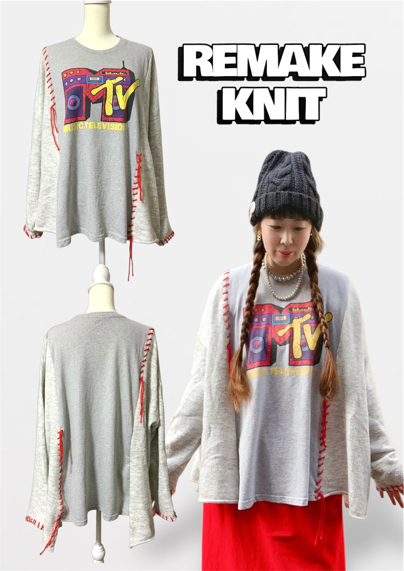 1点もの リメイクドッキングニット ニット×Tシャツ ハンドステッチ【送料無料】