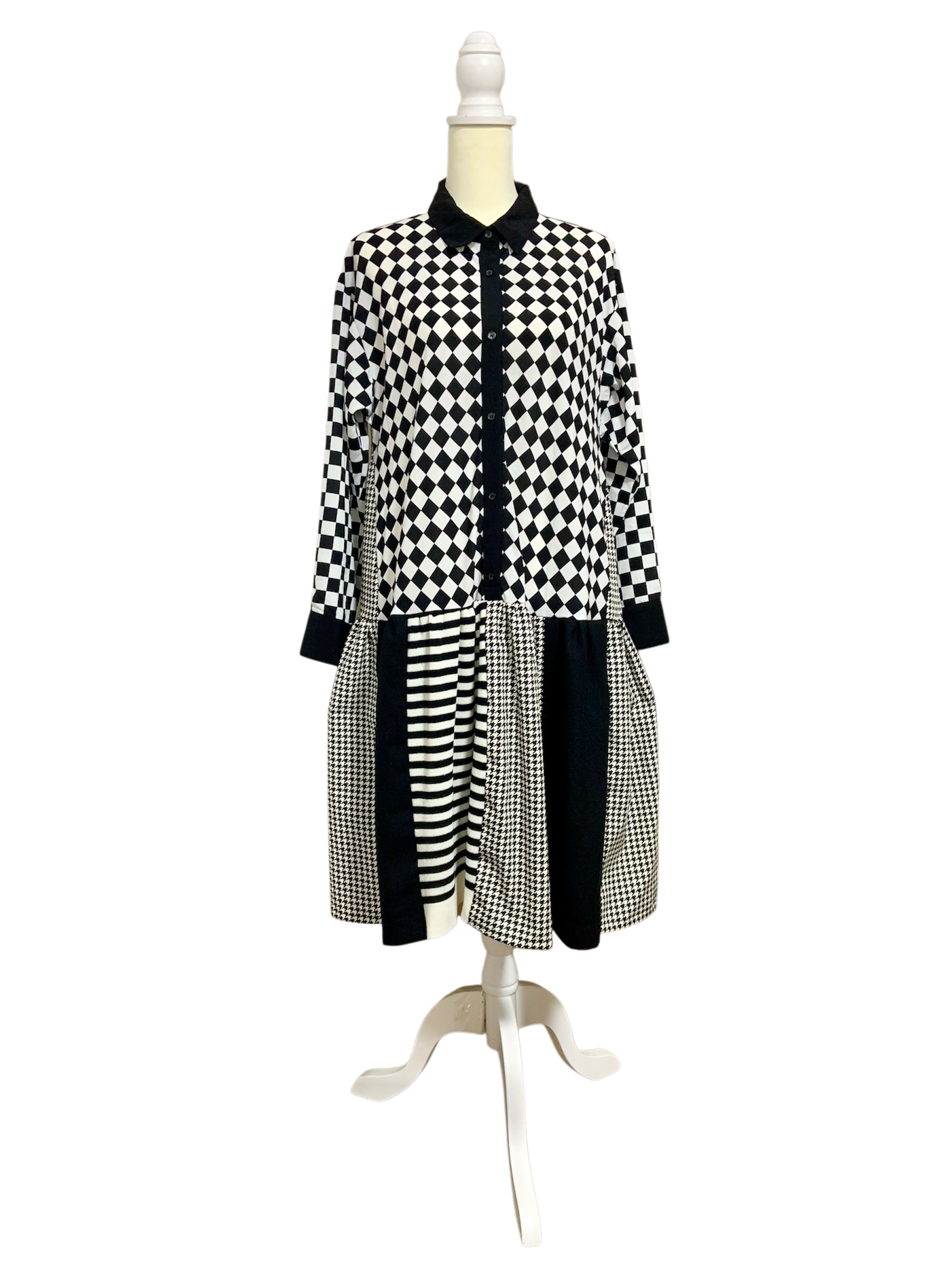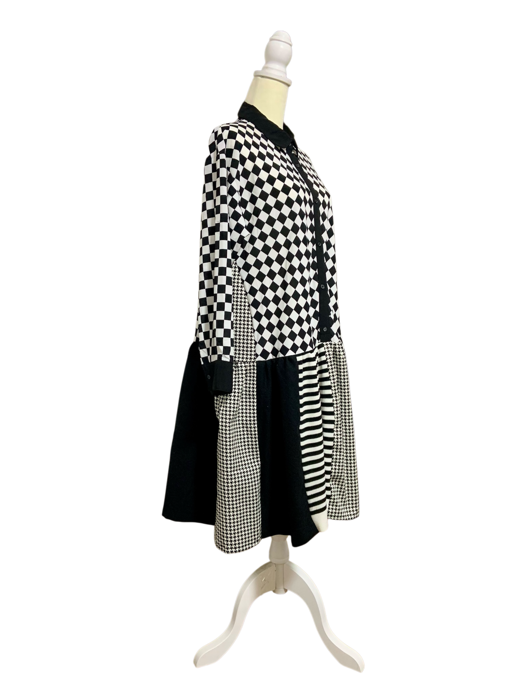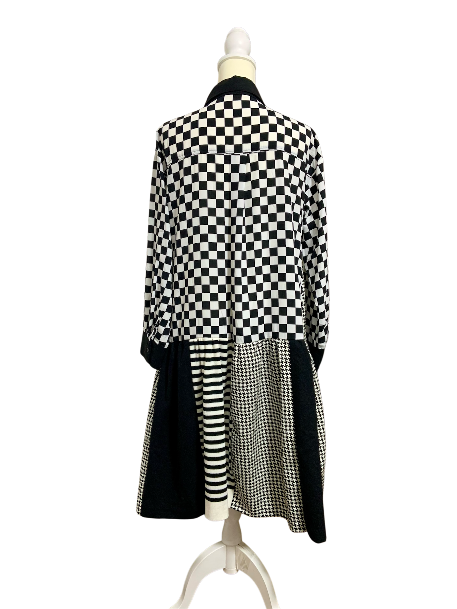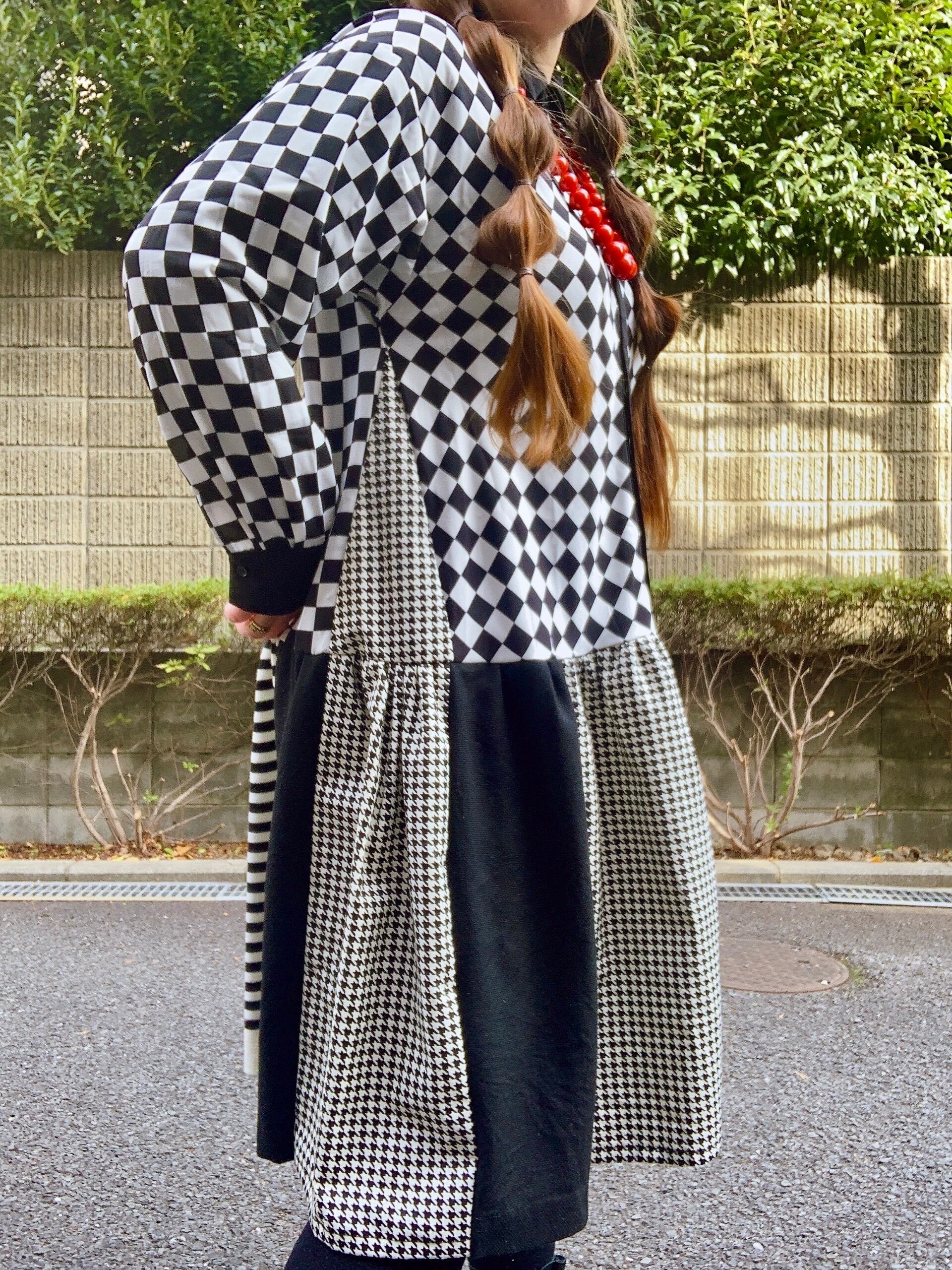 1点もの リメイクワンピース モノトーン柄 異素材ミックス 再構築【送料無料】