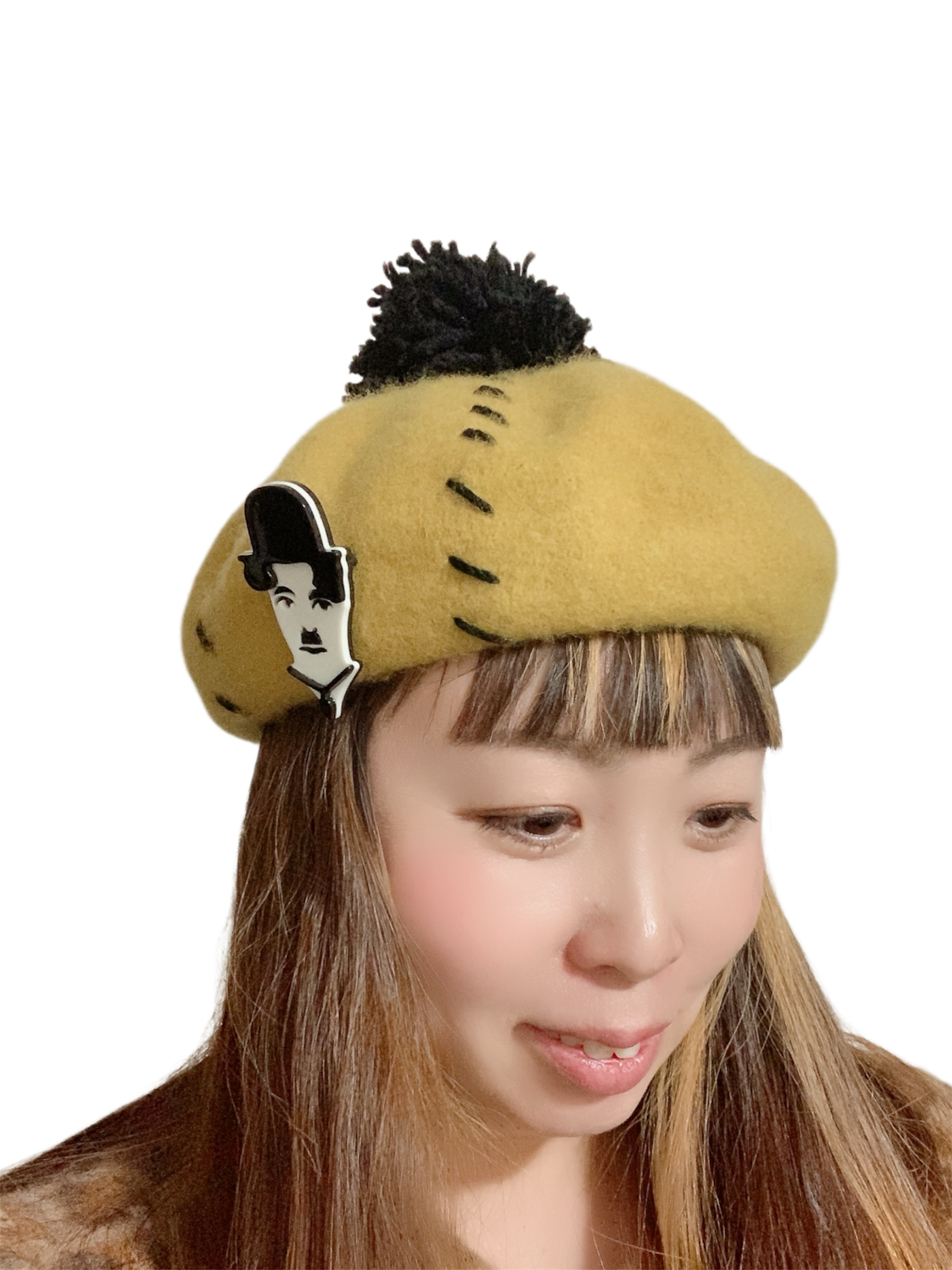 1点もの リメイクベレー帽 ハンドステッチ チャップリン イエロー【送料無料】