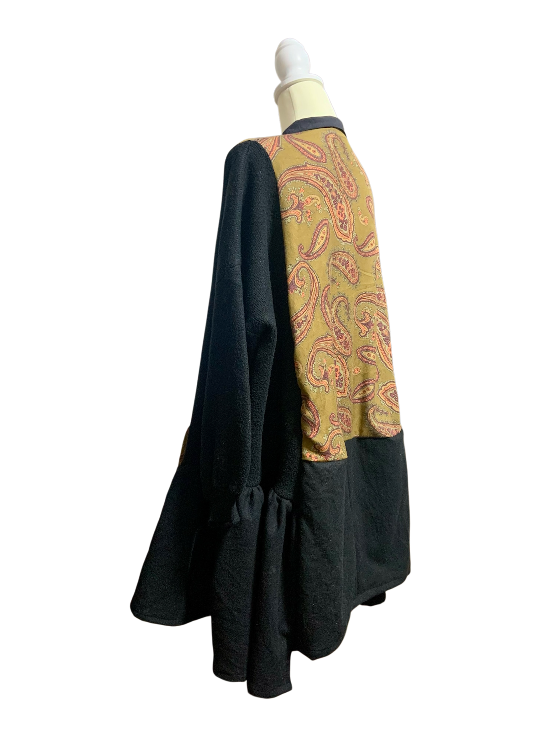 1点もの リメイクワンピース 80sペイズリー柄シャツ×ニット×ウール生地 超オーバーサイズ【送料無料】
