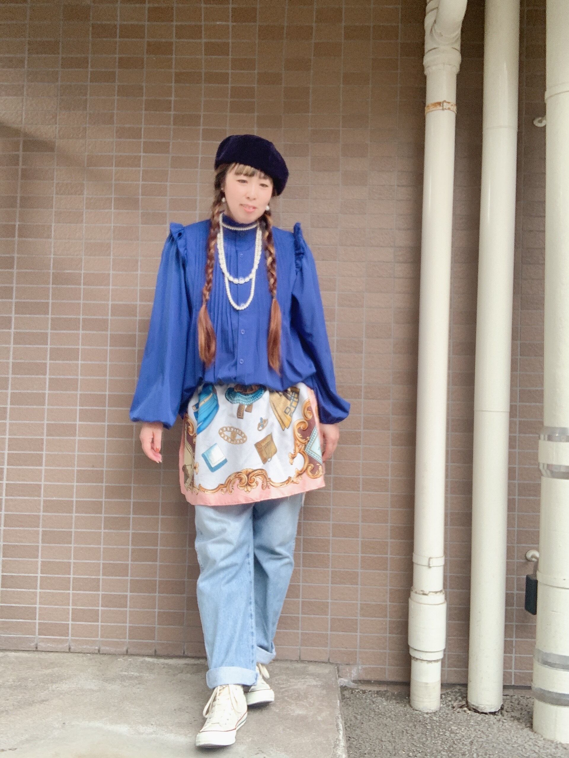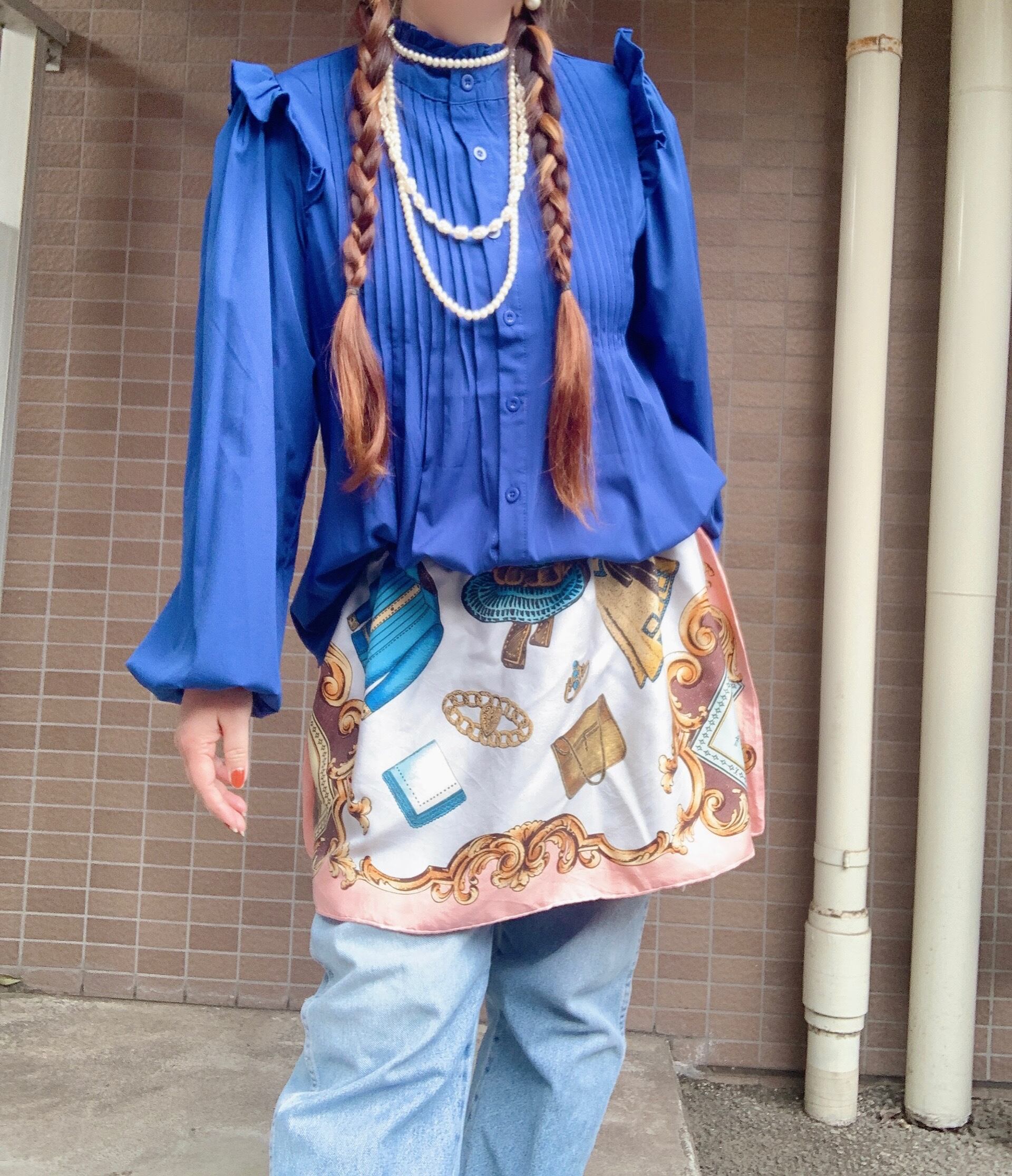 1点もの リメイクスカーフスカート レイヤード用 ブルー×ピンク柄【送料無料】