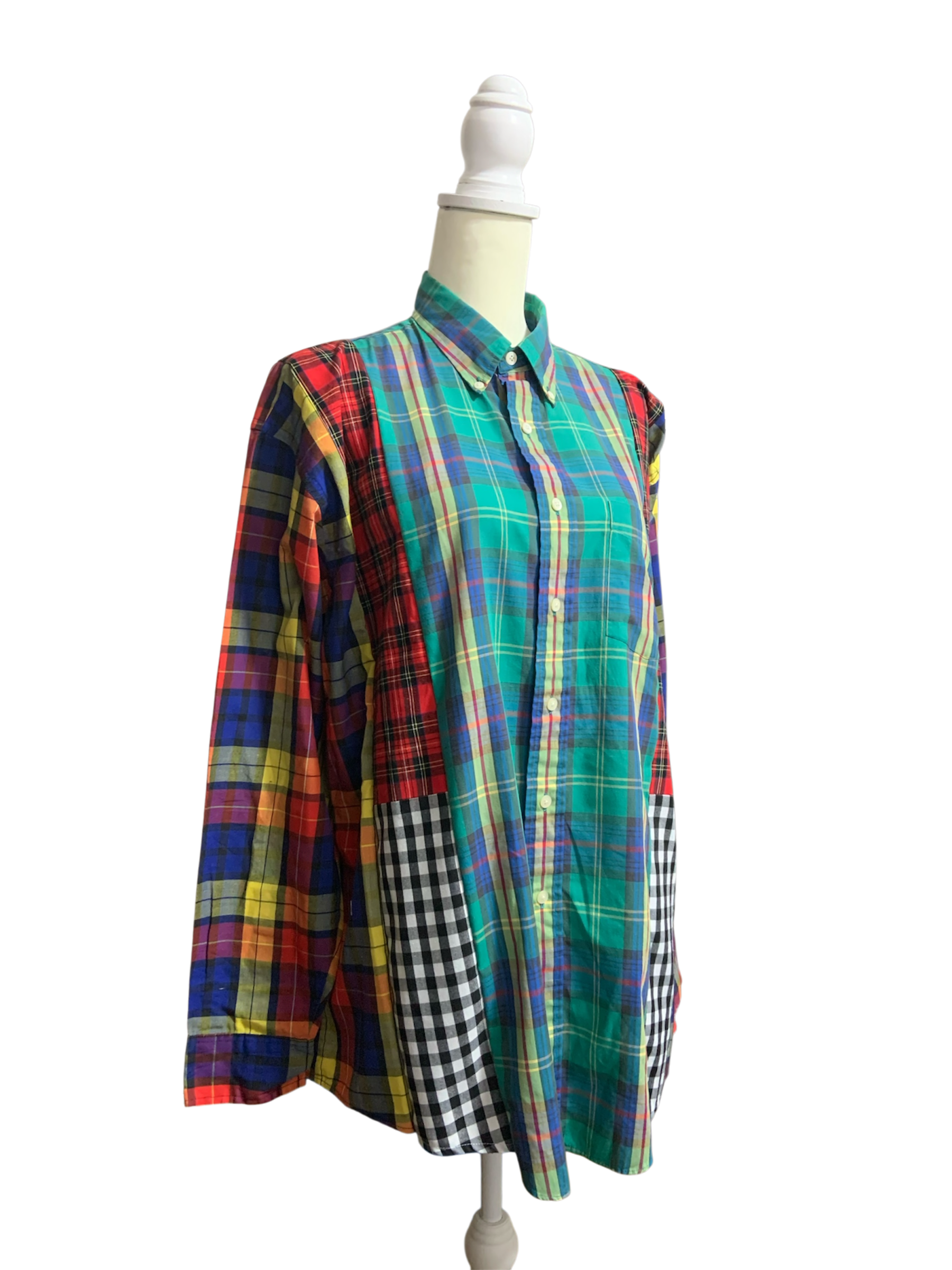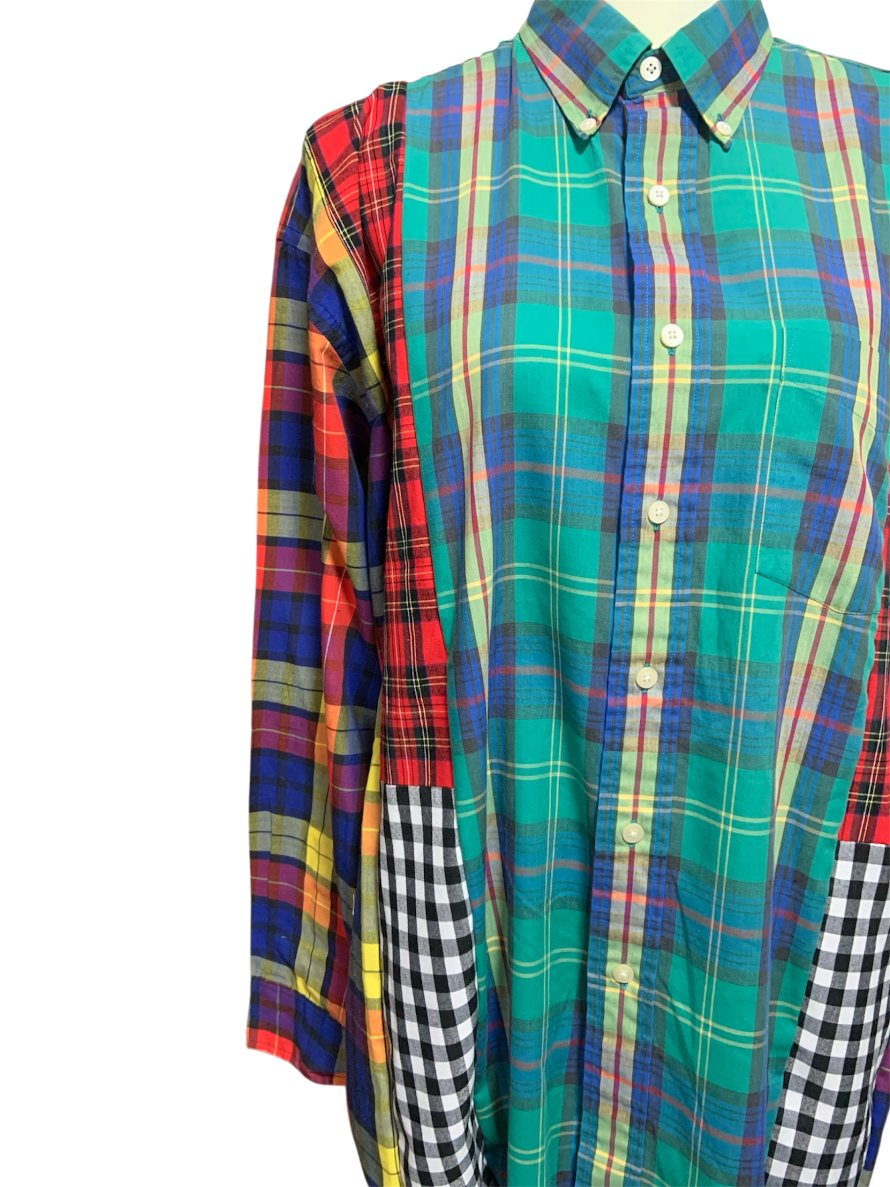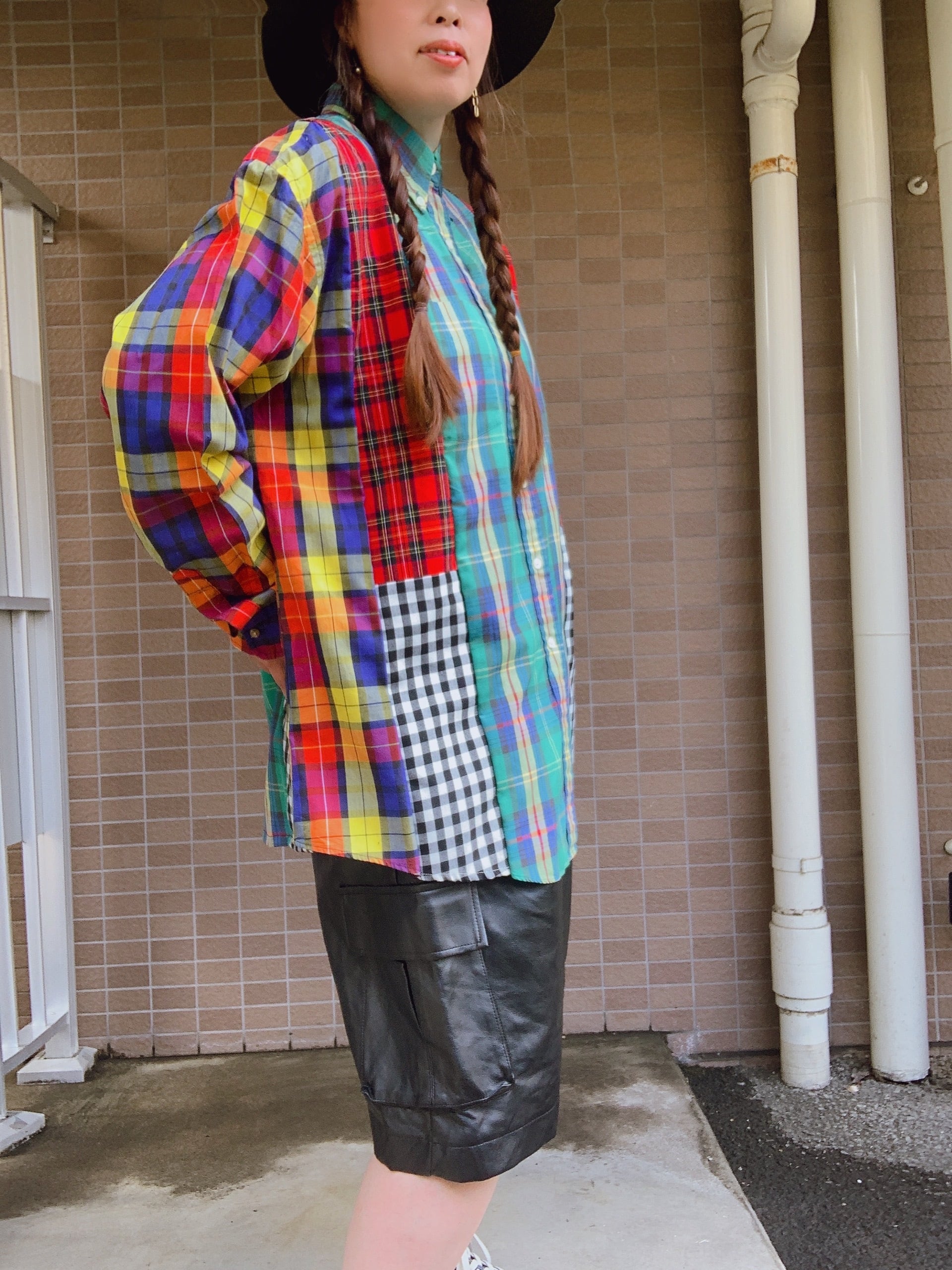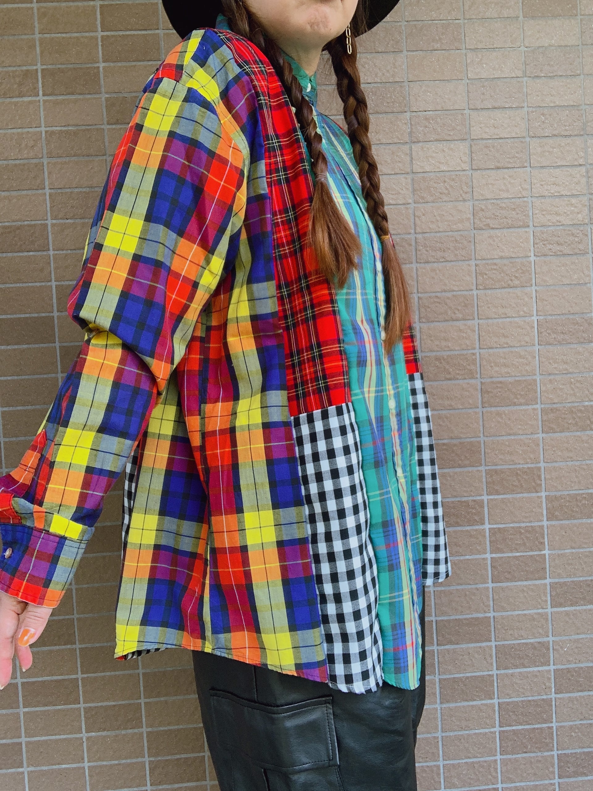1点もの リメイクシャツ チェック×チェック×ギンガム ユニセックス【送料無料】