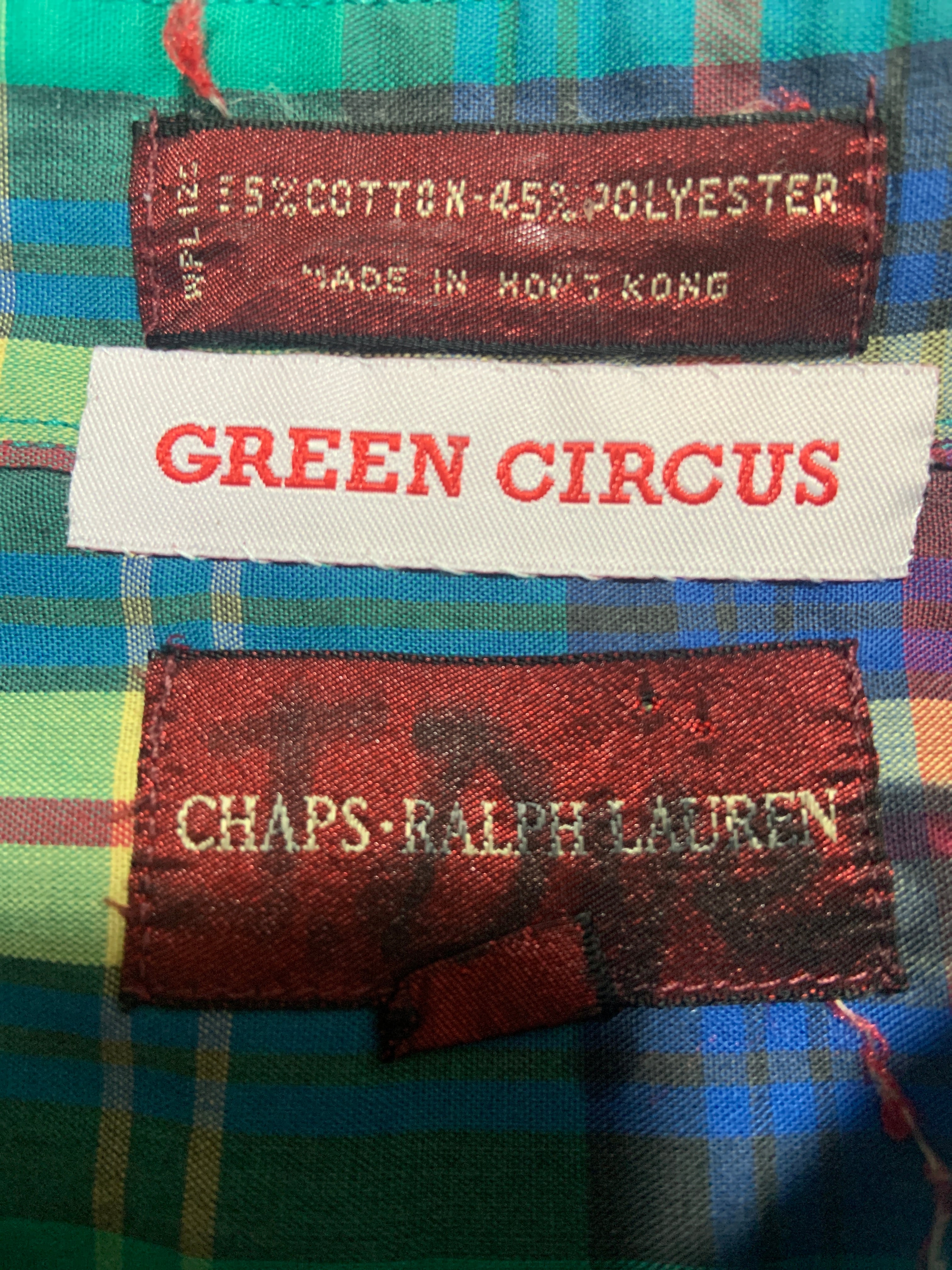 2枚の古着シャツとチェック生地、USEDトップスを解体&ドッキングした
