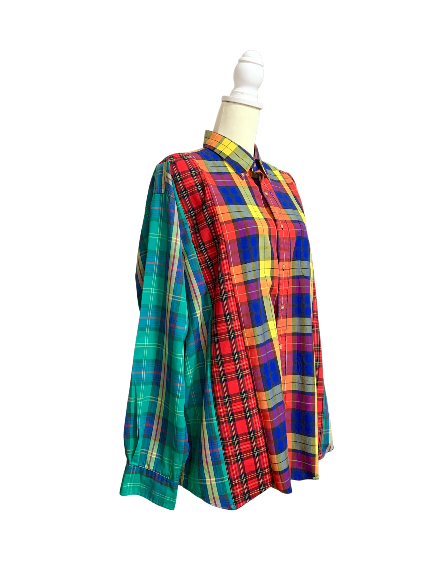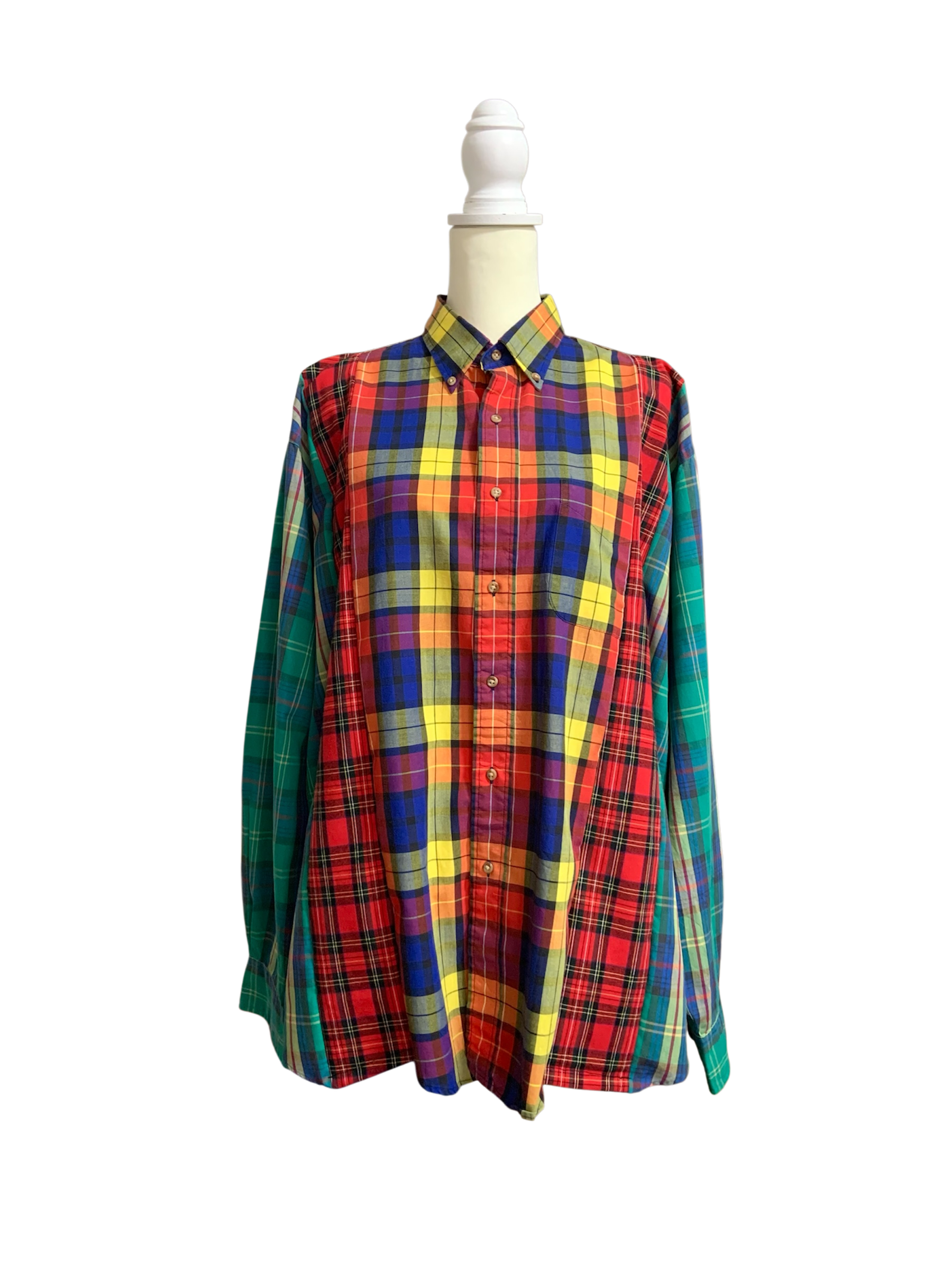 1点もの リメイクシャツ チェック×チェック ユニセックス【送料無料】