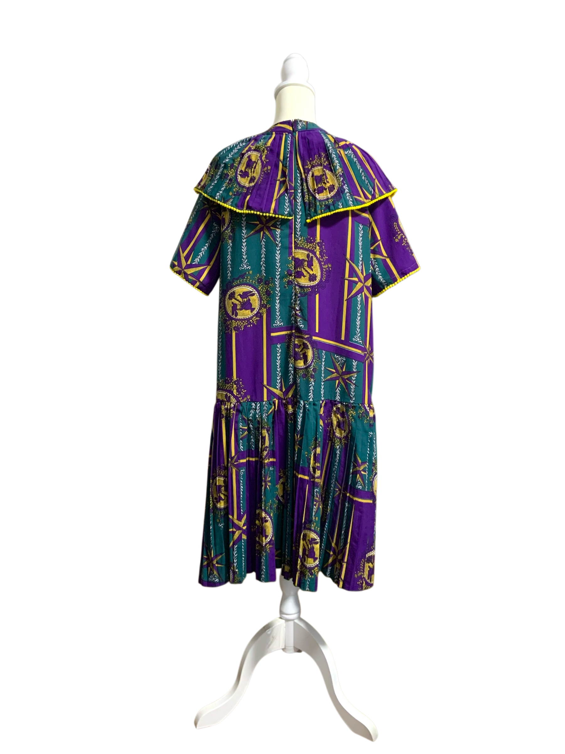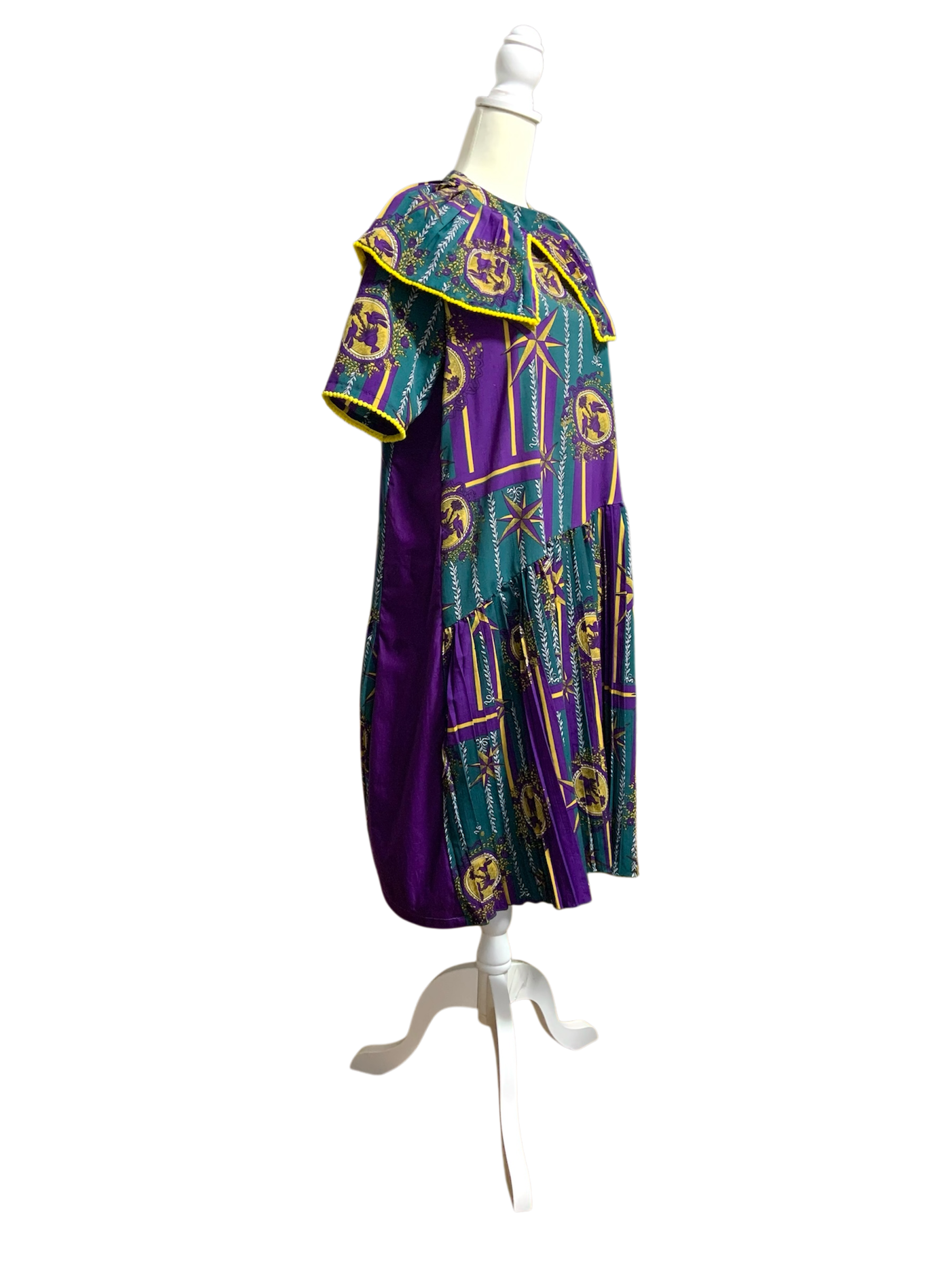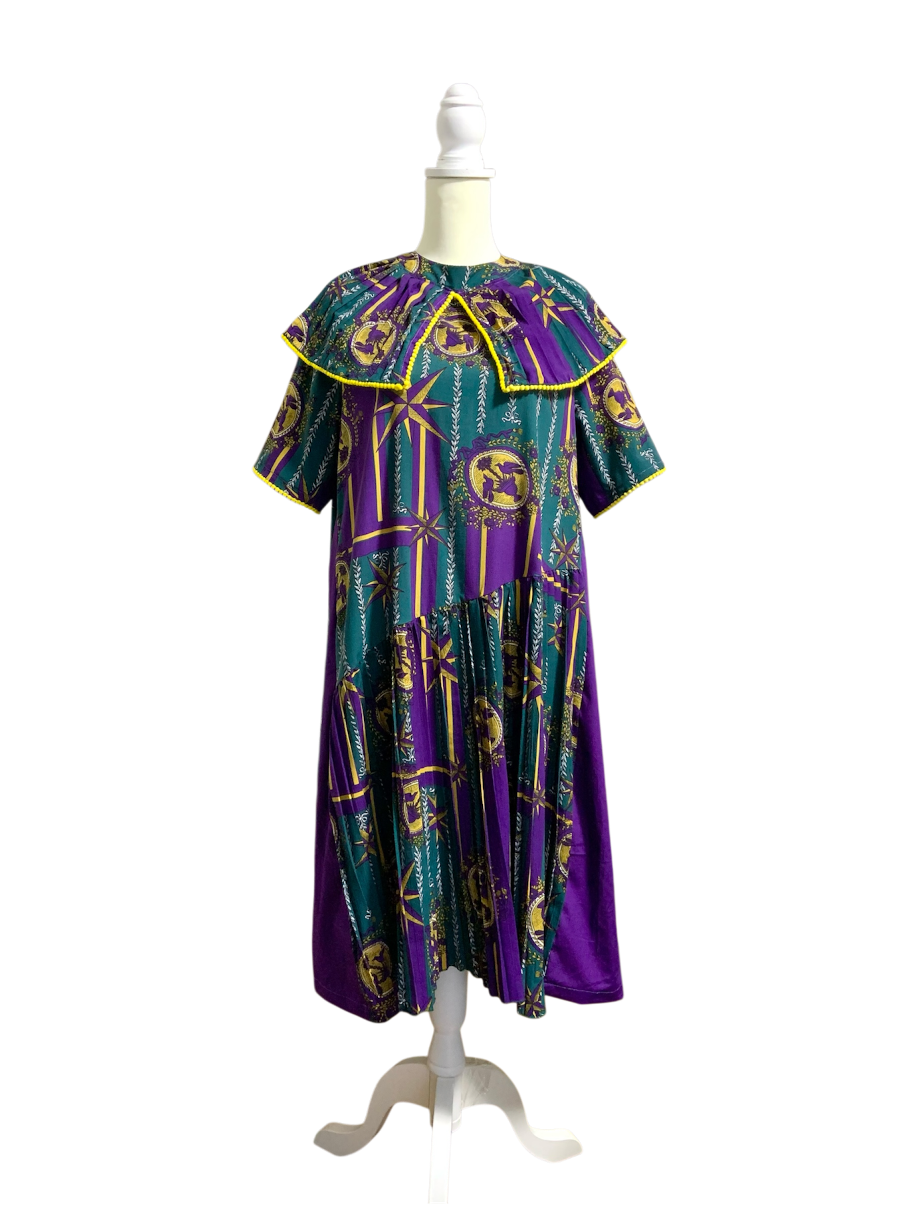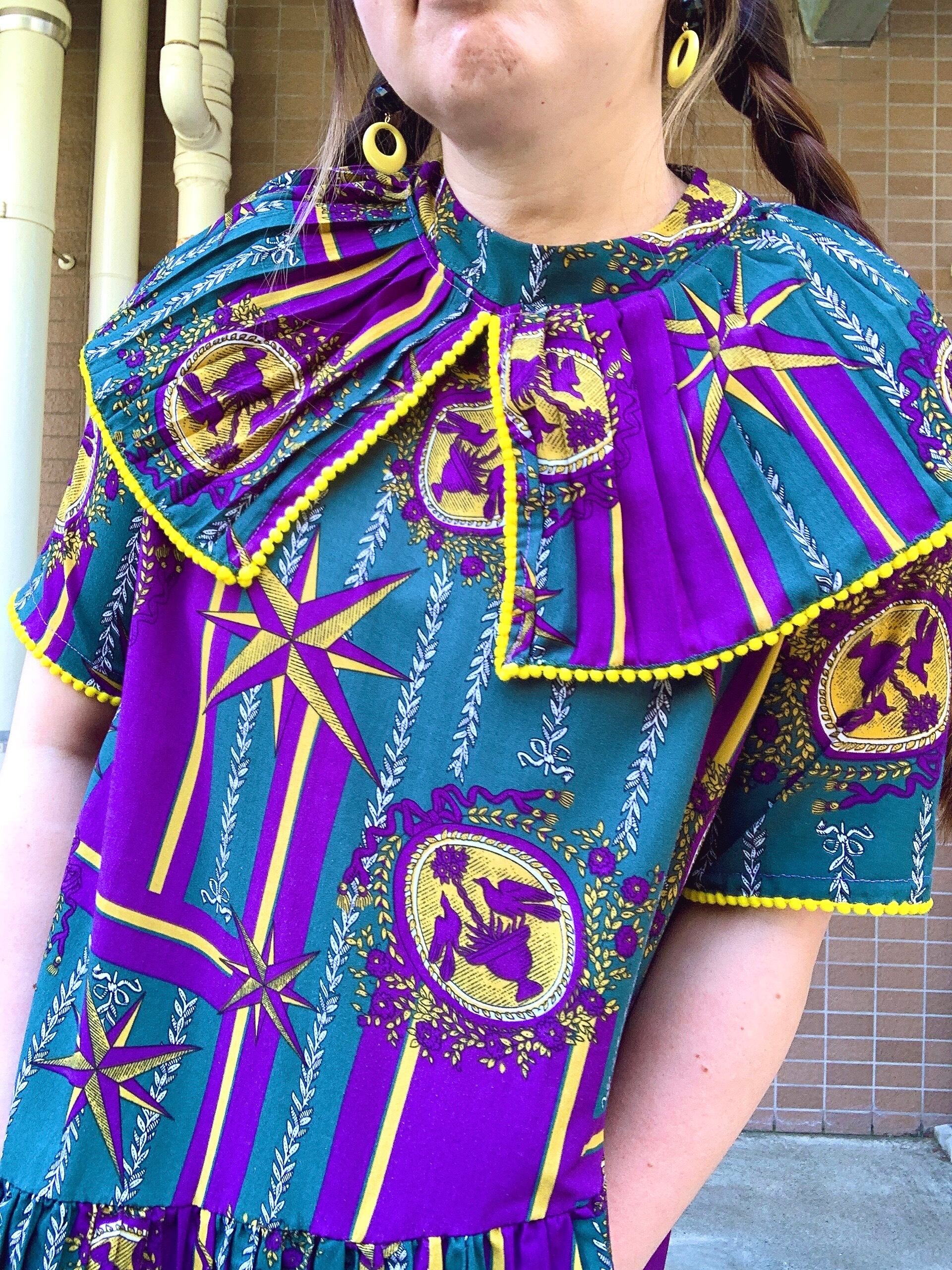1点もの リメイクレトロ柄半袖ワンピース ビッグカラー【送料無料】