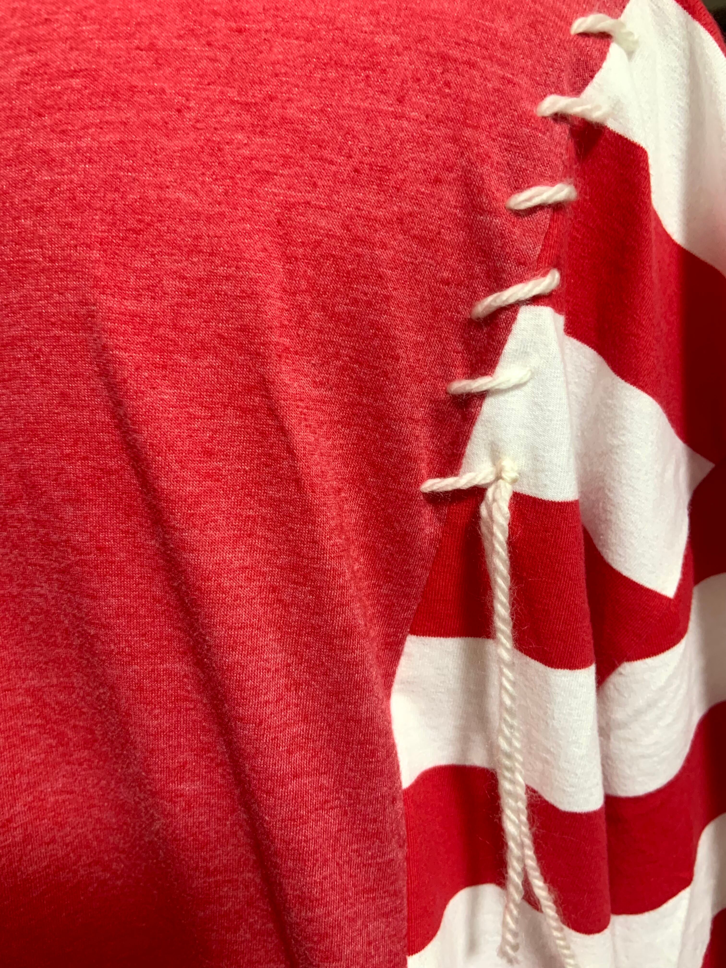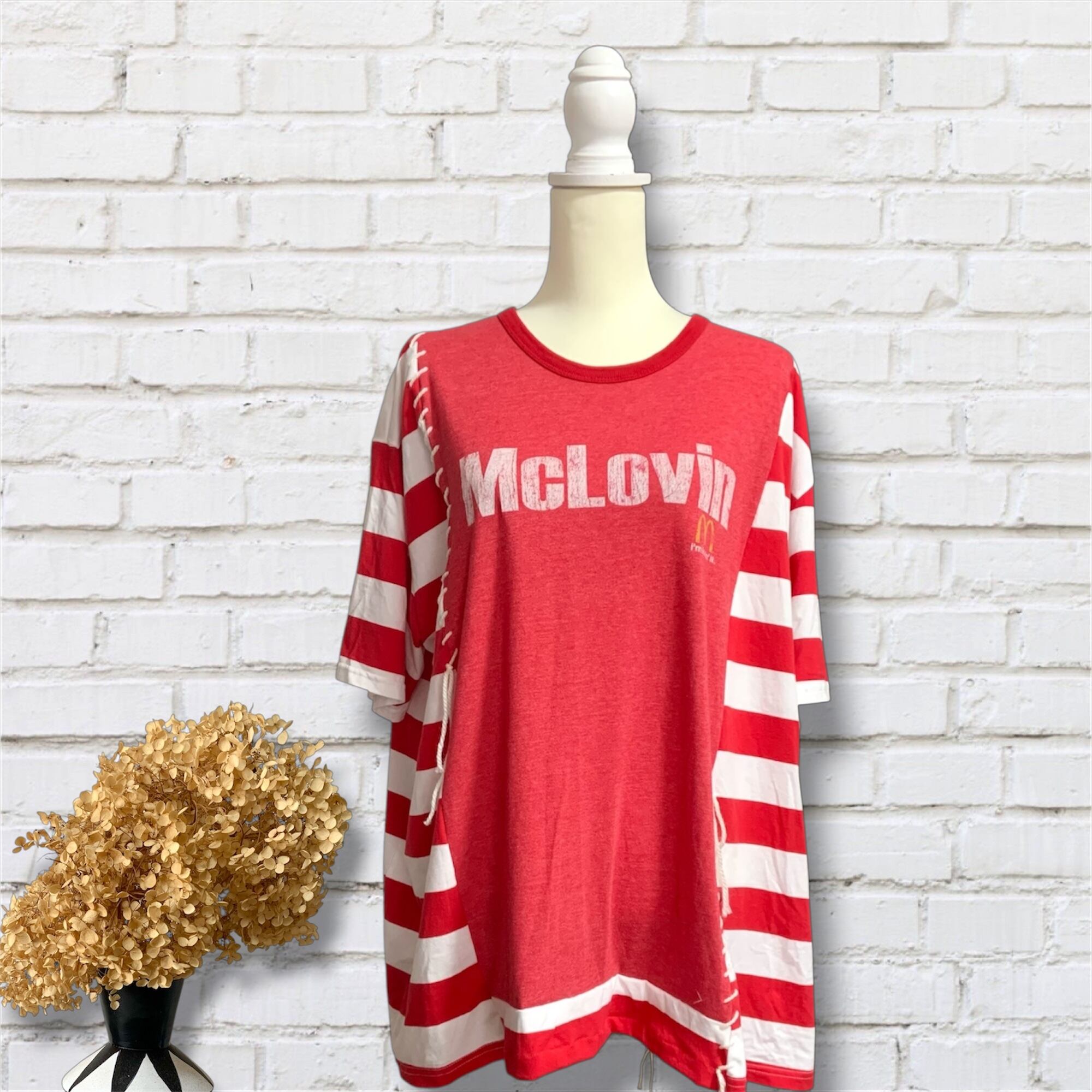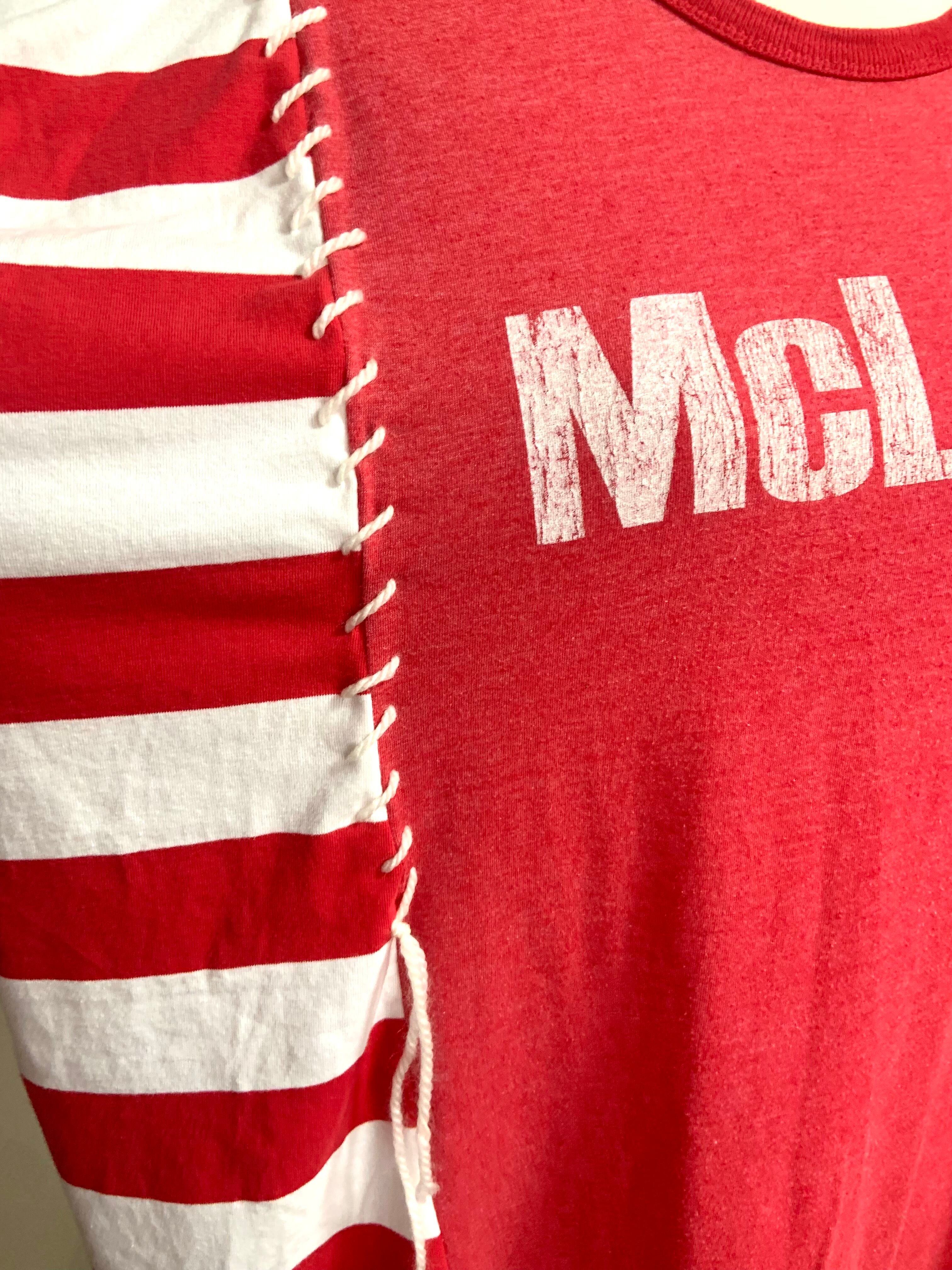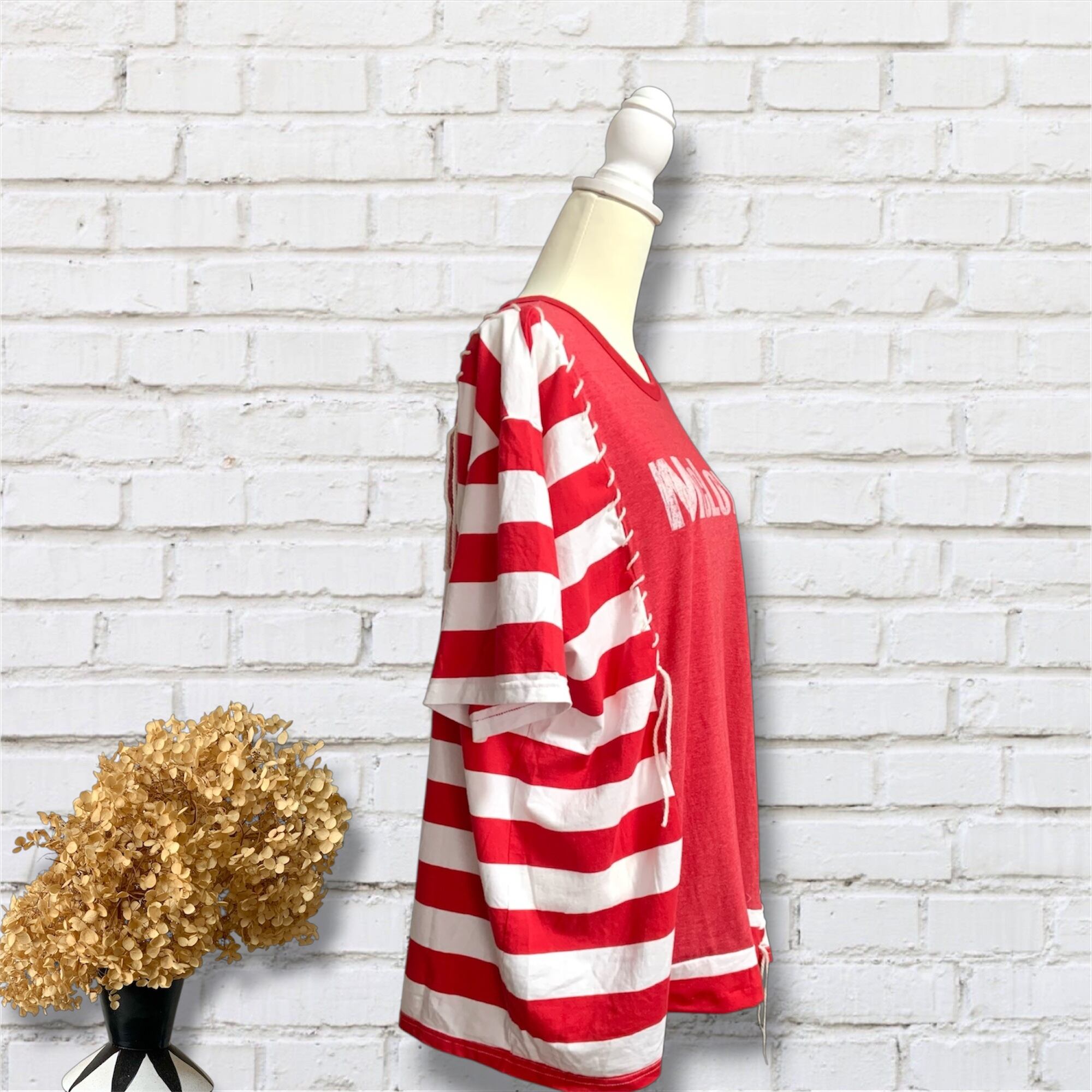 1点もの リメイクドッキングTシャツ ハンドステッチ 赤 リンガー×ボーダー ユニセックス【送料込み】