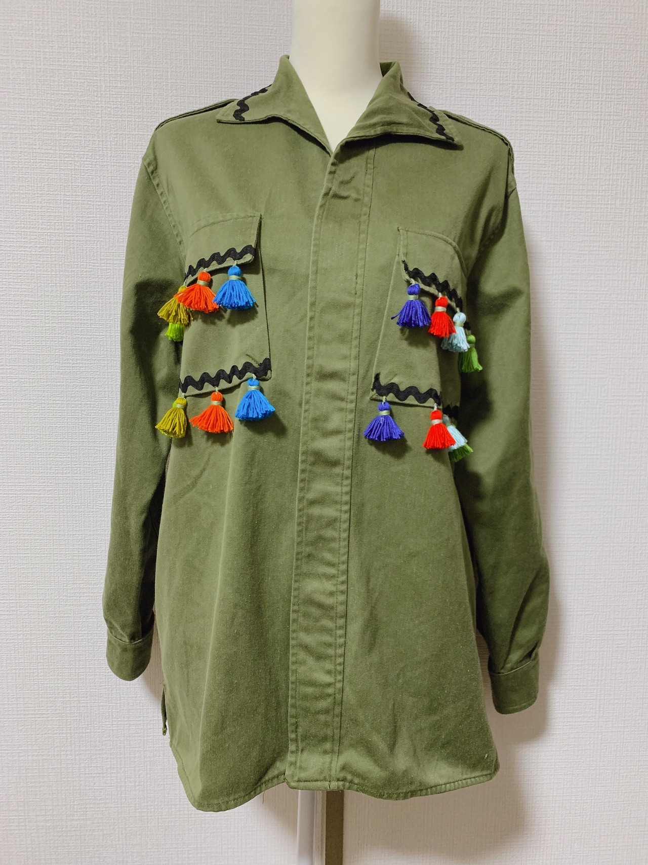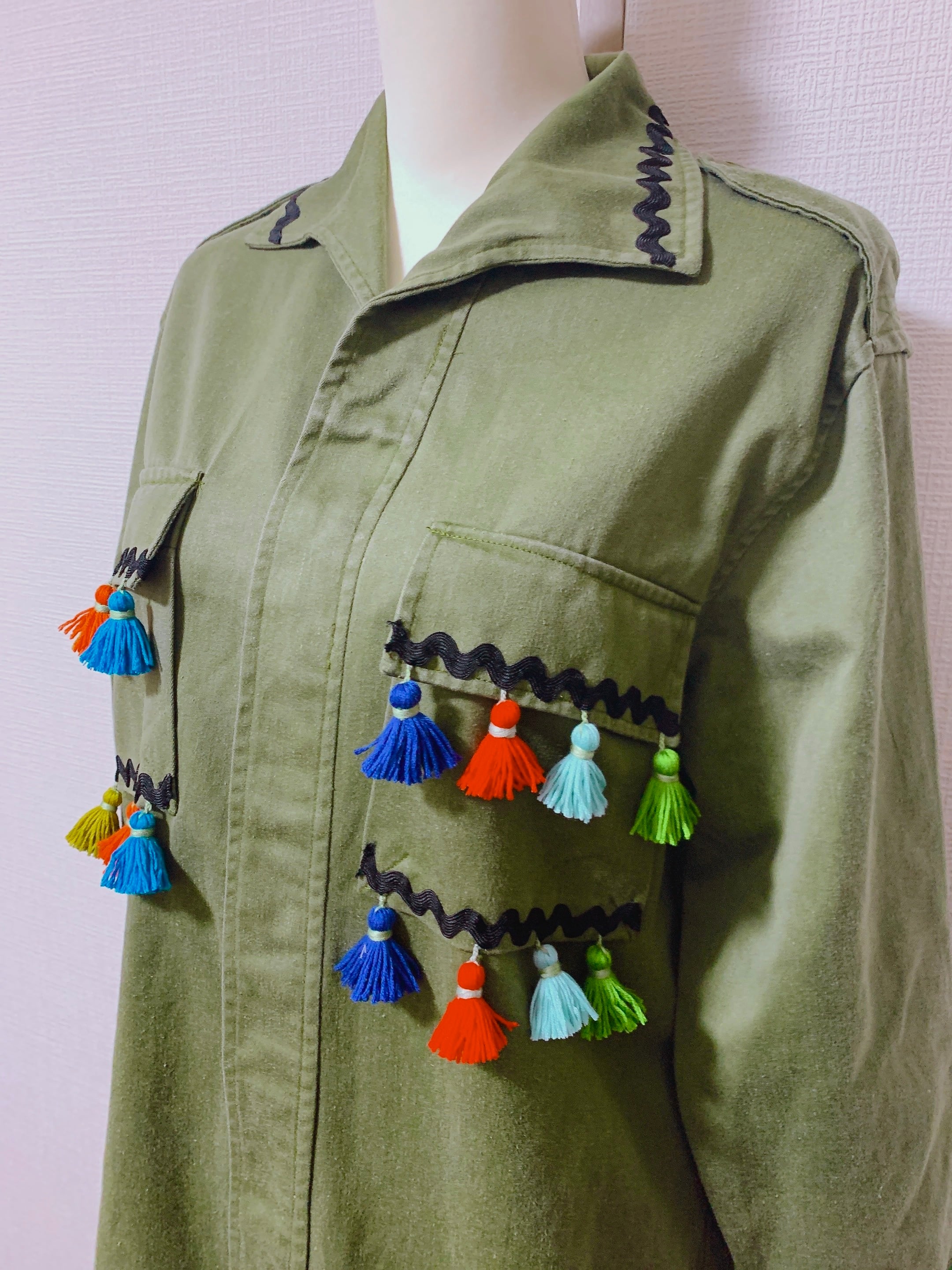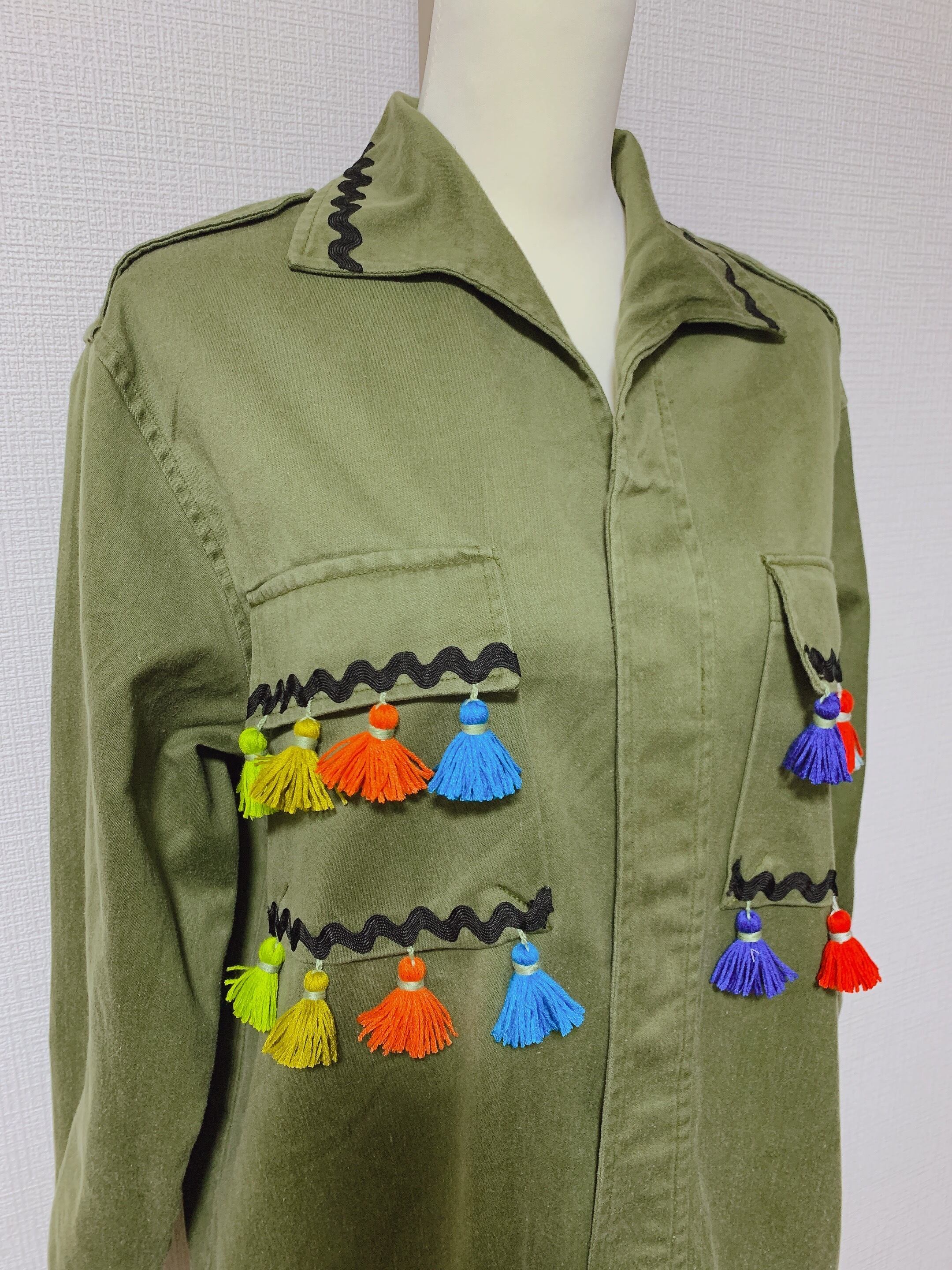1点もの リメイクカラフルタッセルミリタリーシャツジャケット【送料無料】