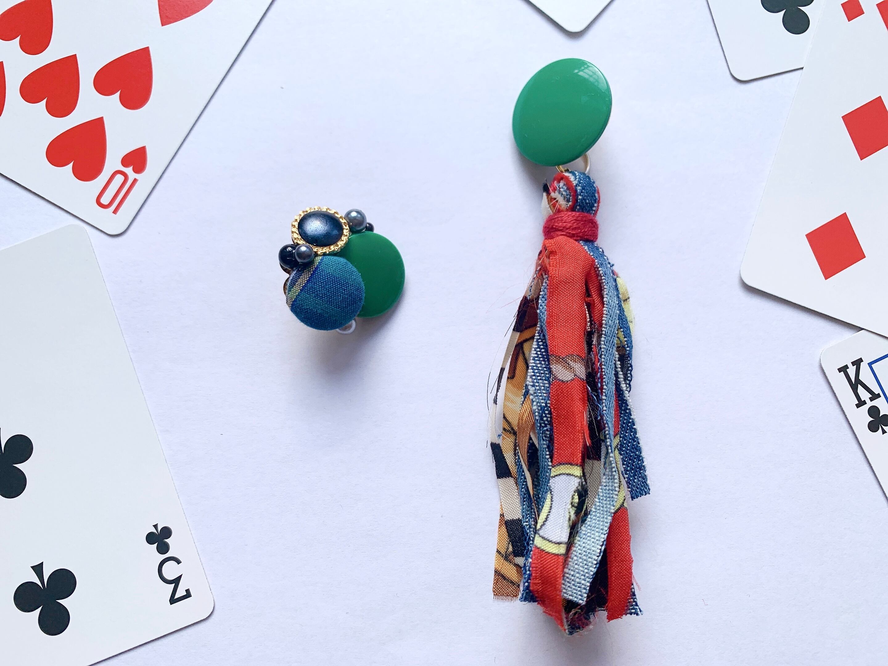 1点もの ヴィンテージスカーフとデニムのタッセルピアス【送料無料】