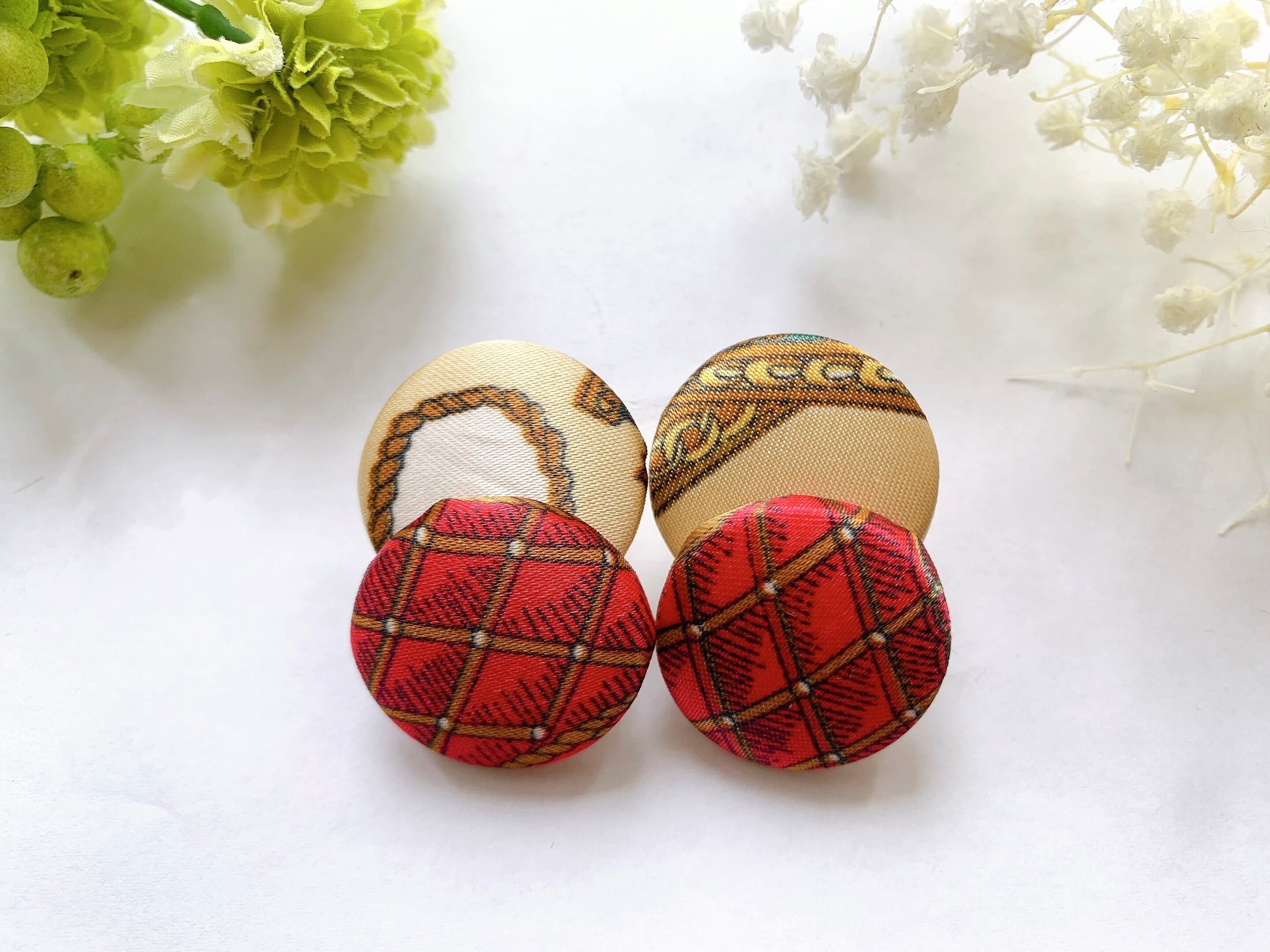 オリジナルのくるみボタンのピアスです。