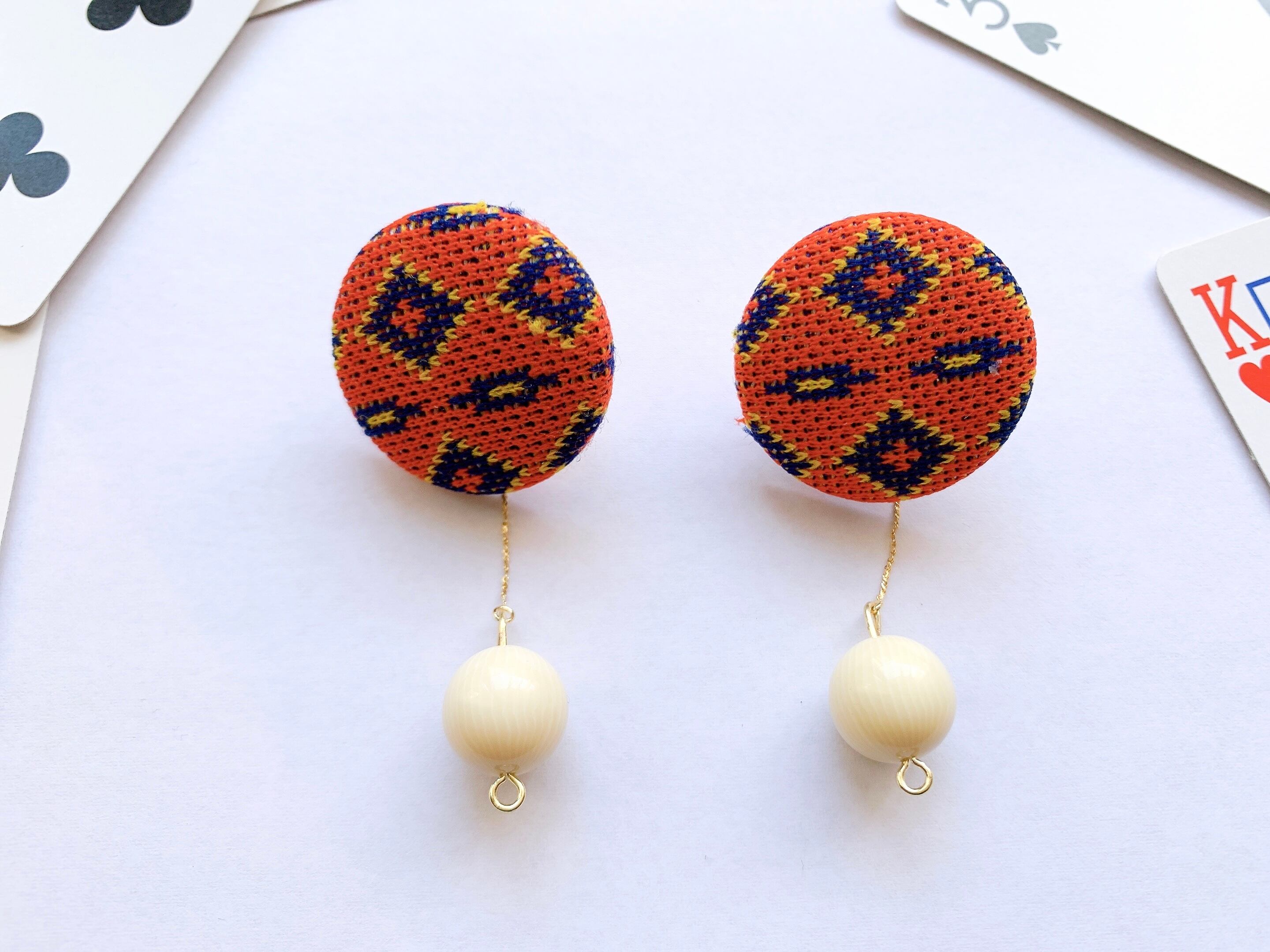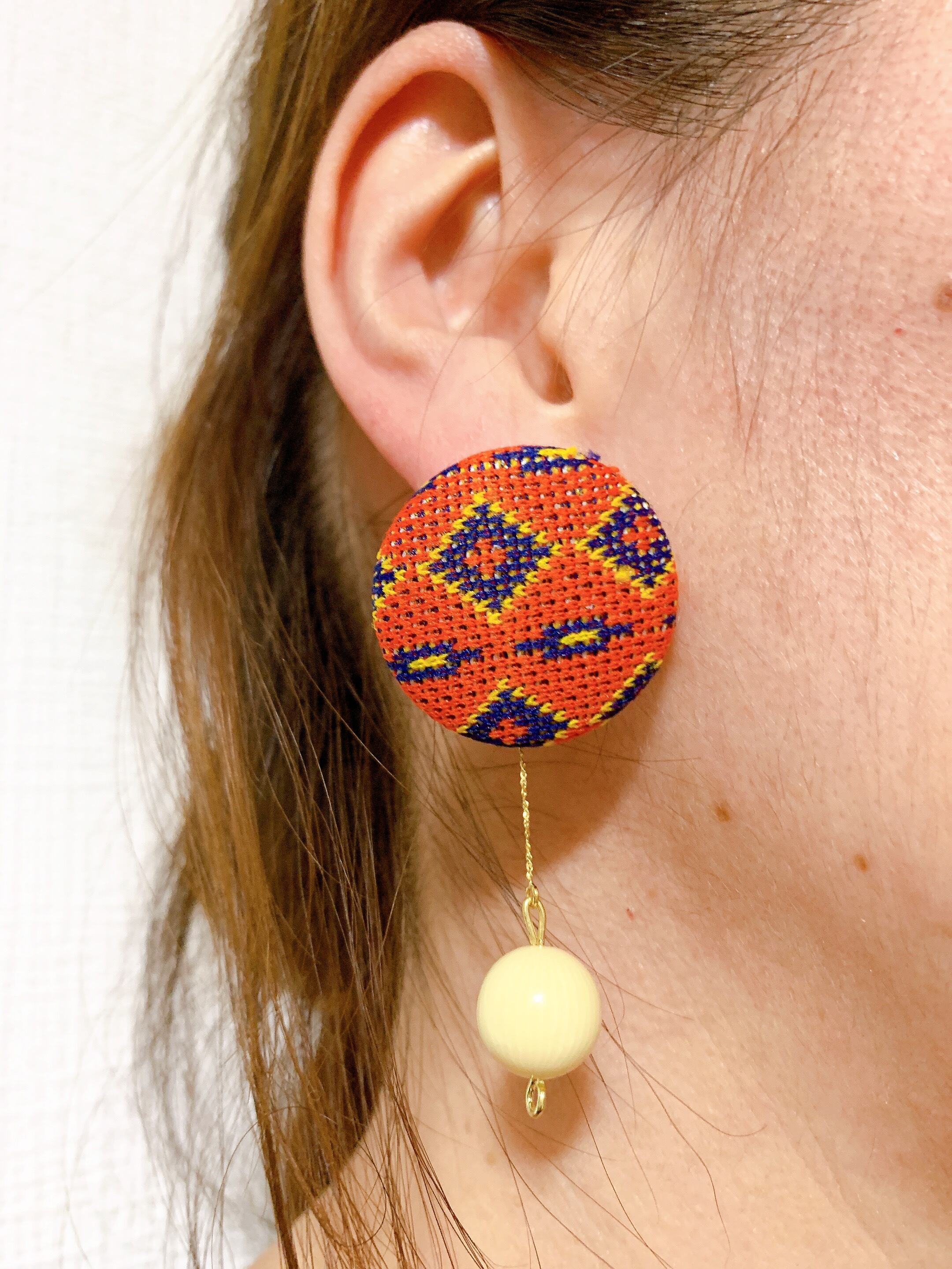オリジナルのくるみボタンのピアスです。
