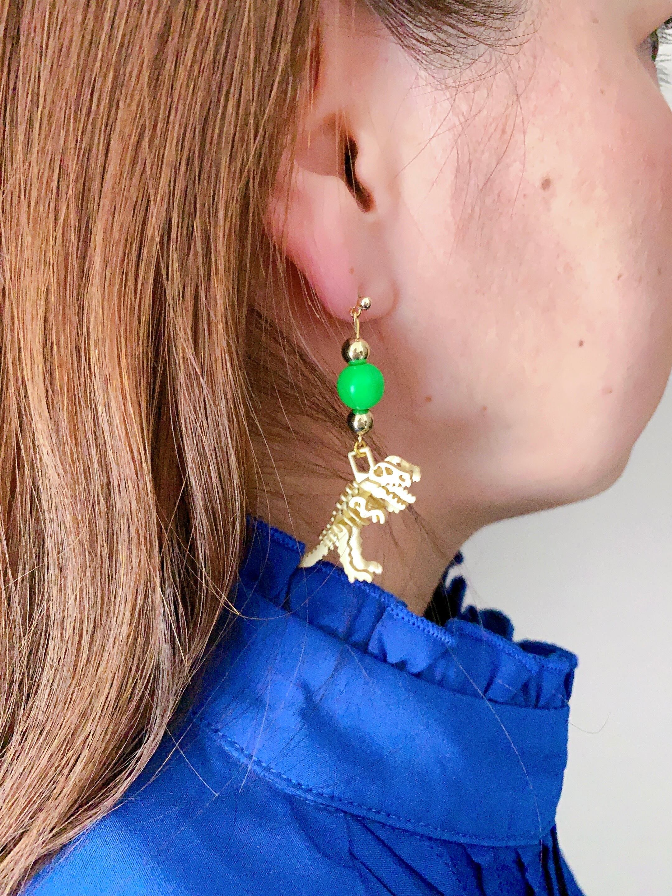 1点もの ゴールド恐竜ピアス ネオングリーン【送料無料】
