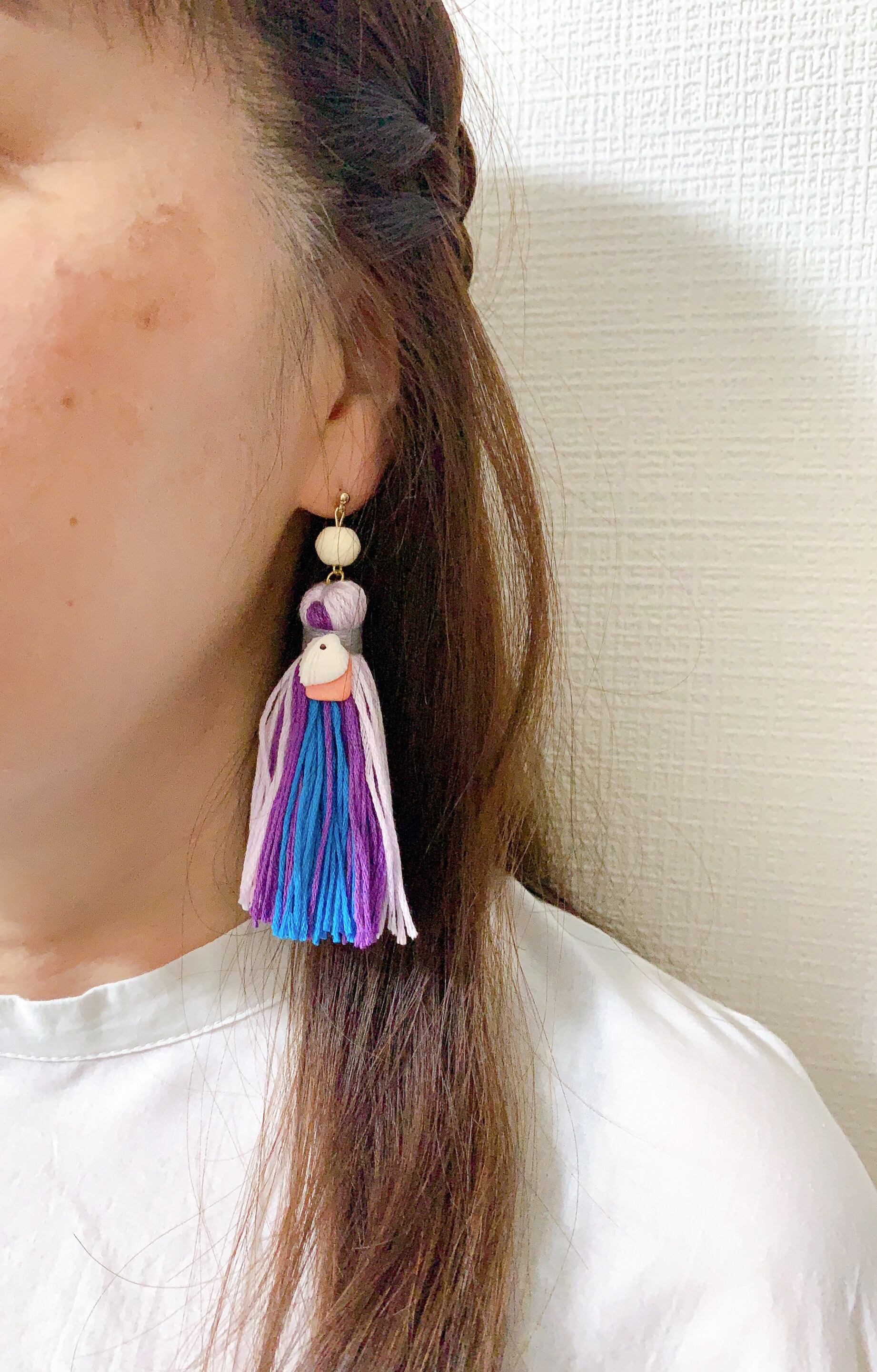 浴衣や水着にも合わせやすいタッセルピアスです♪