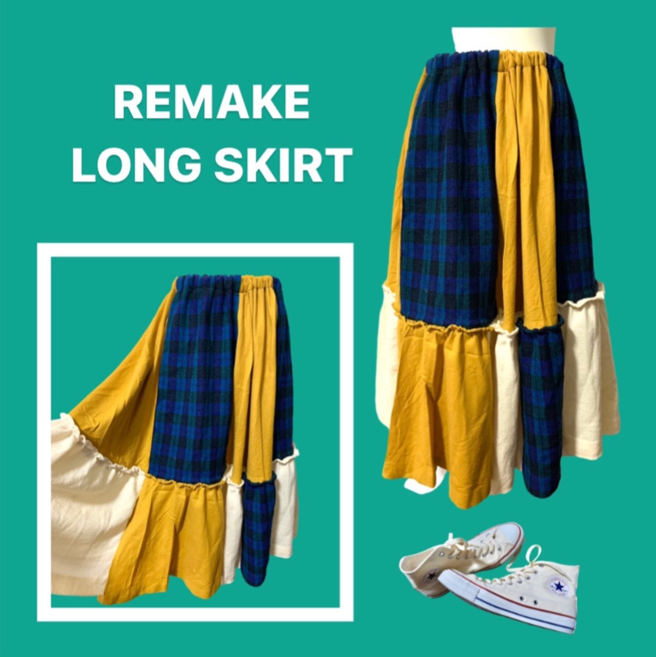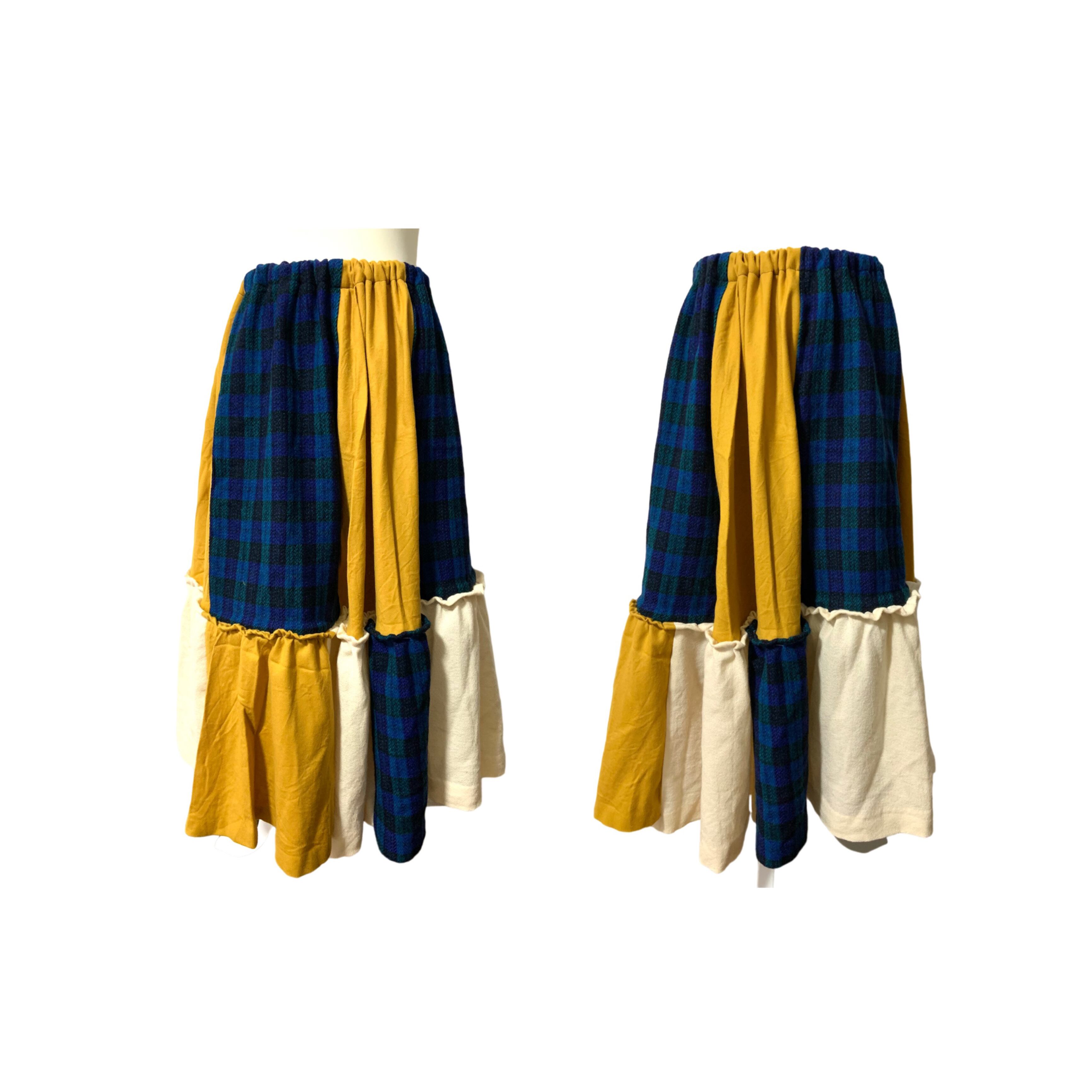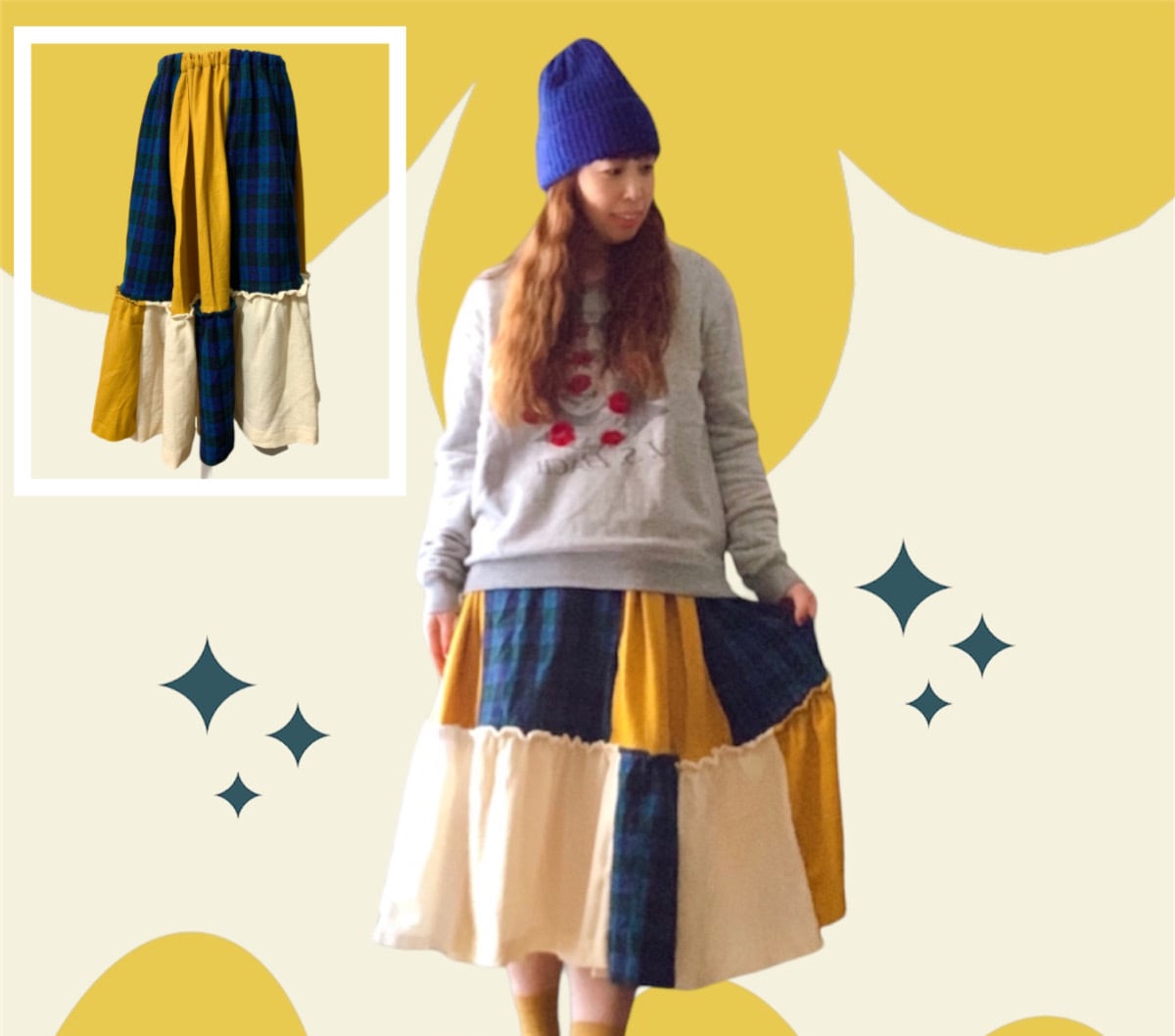 1点もの リメイクロングスカート マスタード×チェック【送料無料】