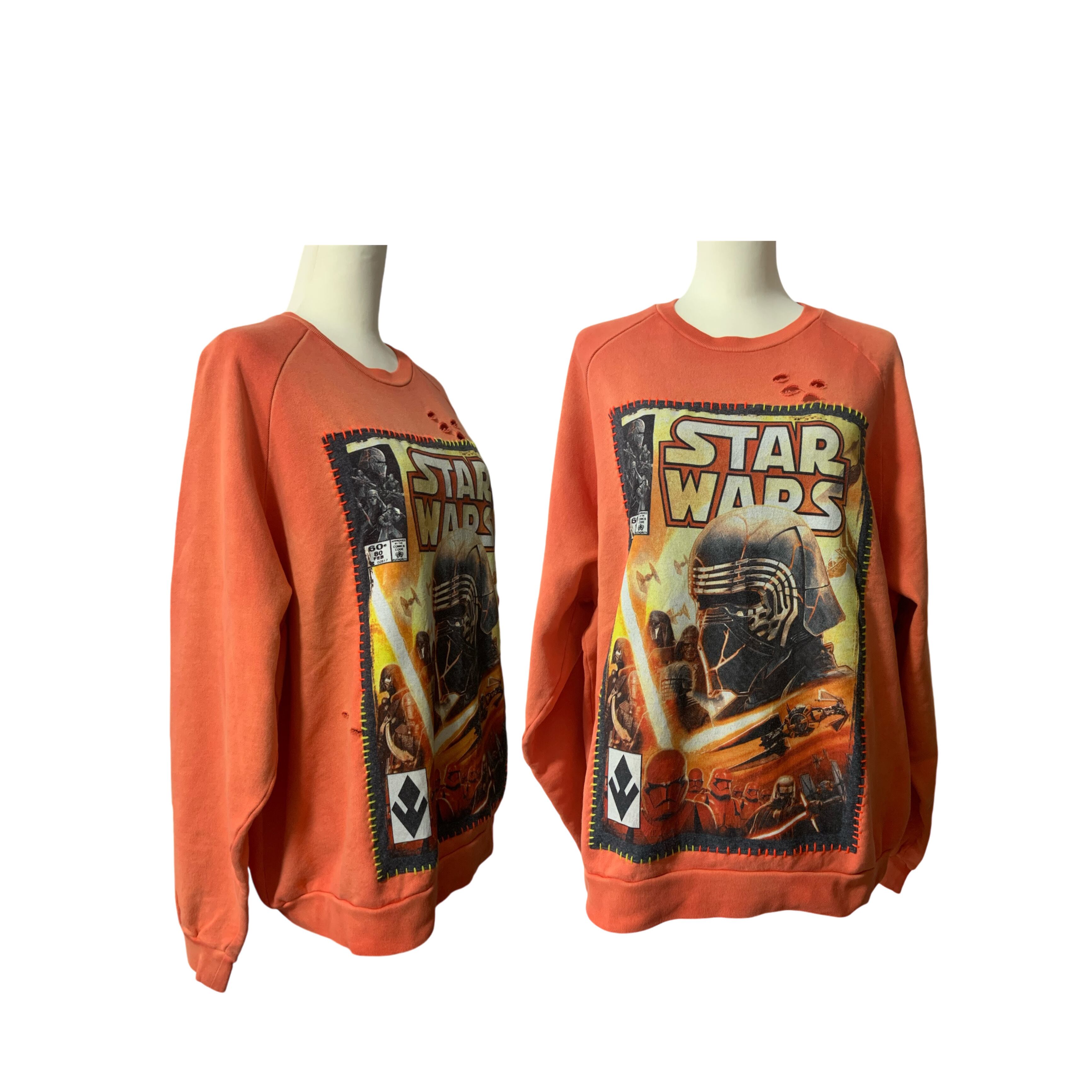 1点もの リメイクダメージ加工スウェット オレンジ【送料無料】