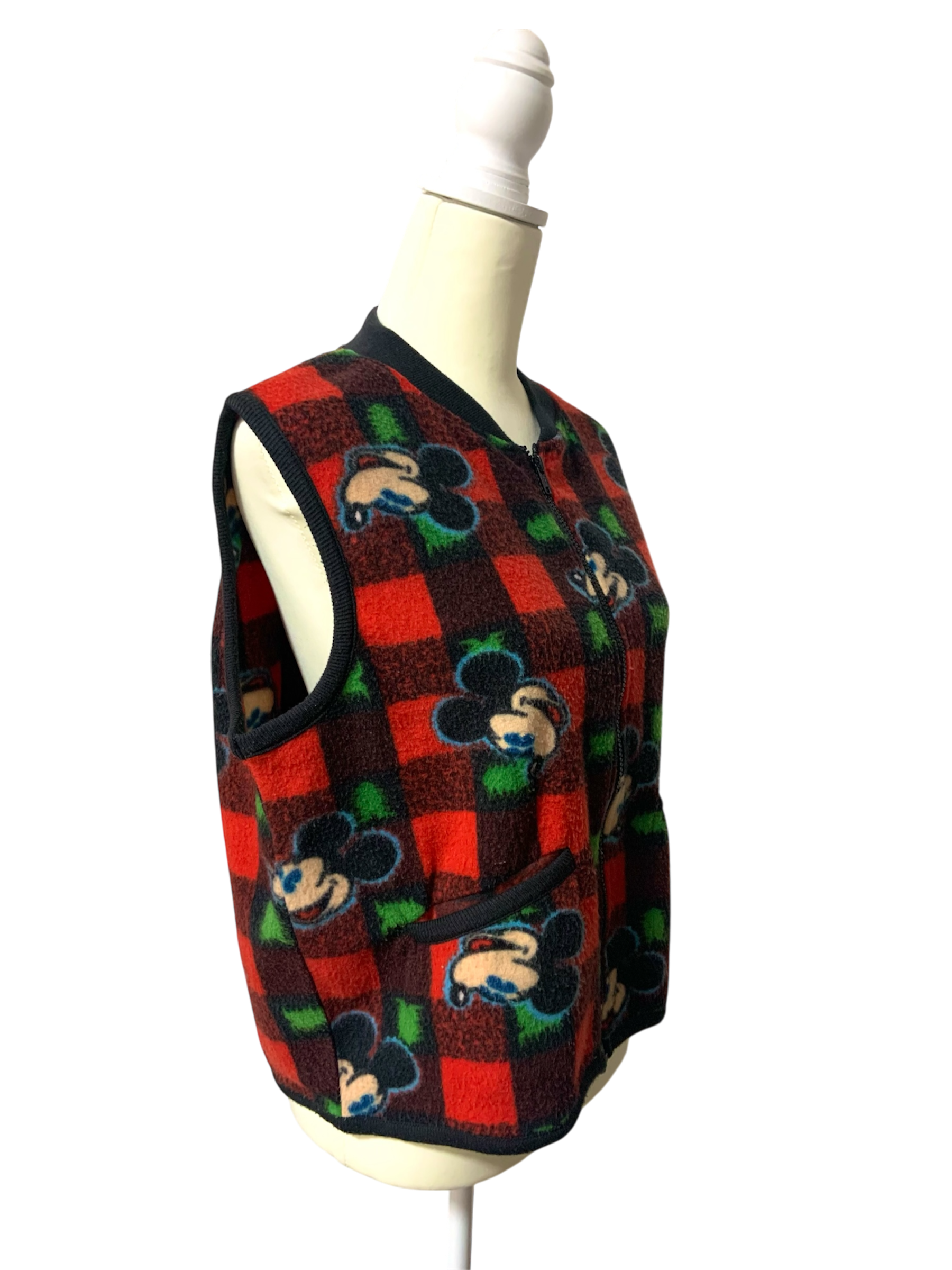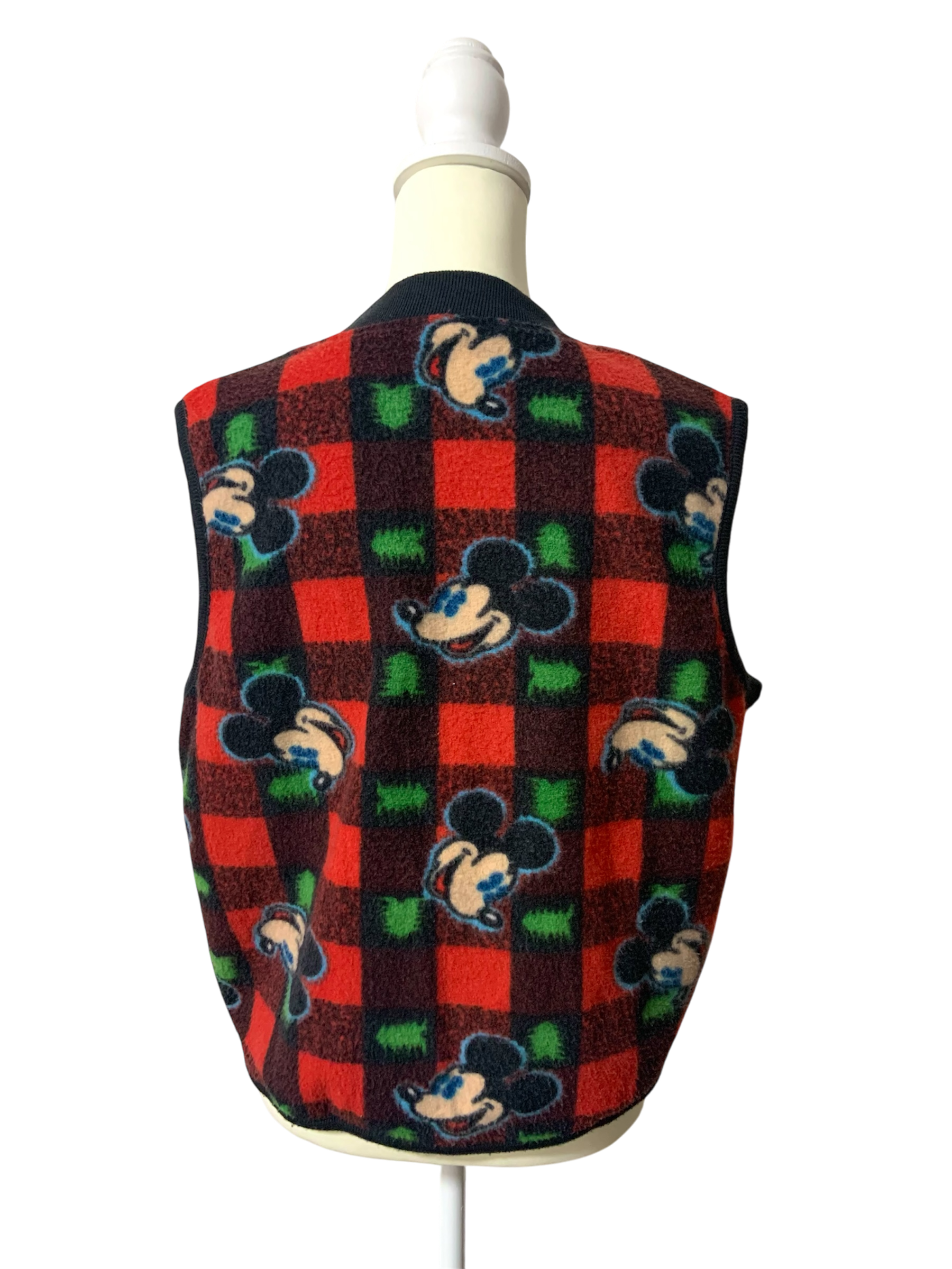 チェック柄にミッキーマウスが全体にプリントされている着心地も抜群なフリースベストです。