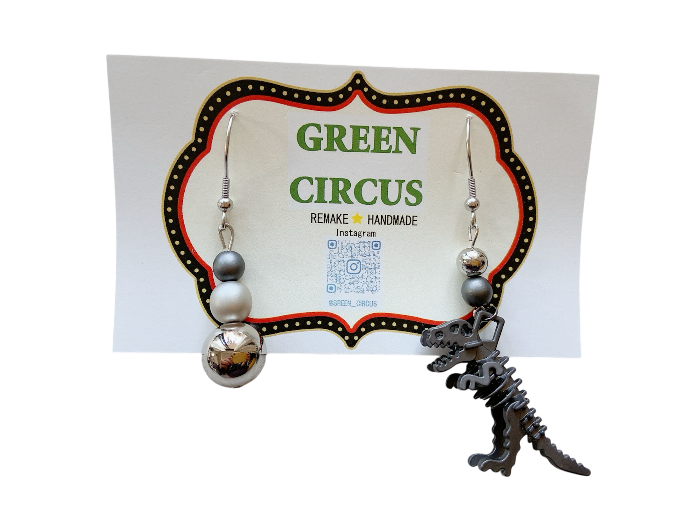 メタル恐竜とシルバーボールビーズの